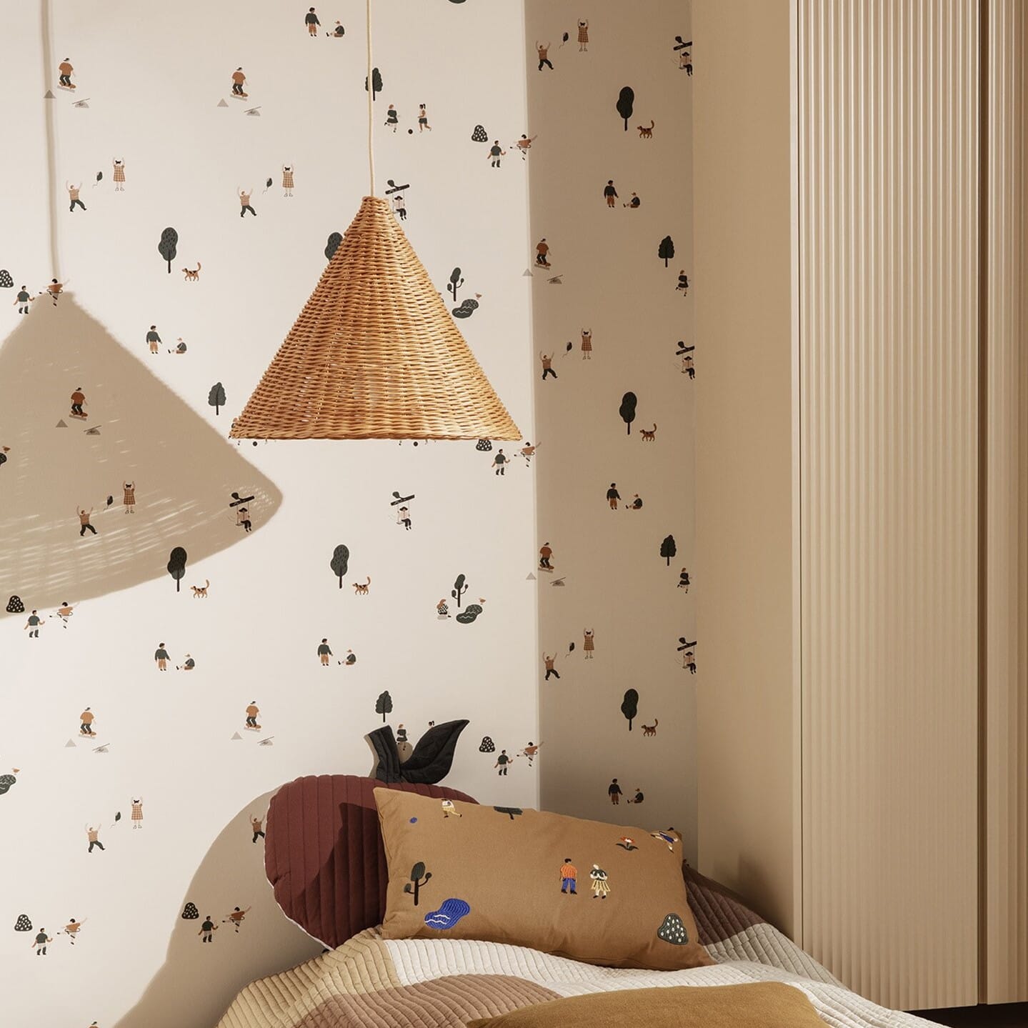 Dou-serien er håndflettet av naturlig rotting og feirer den nydelige kontrasten mellom geometriske former og materialets organiske kvaliteter. Denne lampeskjermen vil spre lyset godt samtidig som den gir små glimt av belysning gjennom selve skjermen. Denne lampeskjermen passer til stoffledningssette. Dette er en håndflettet vare, små variasjoner i farge og form kan forekomme. Vær oppmerksom på at variasjoner i form kan føre til at lampen henger ujevnt.