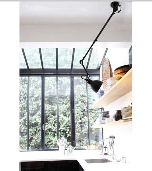 Som en grasiøs arm henger taklampen Lampe Gras No 302 ned fra taket og lyser opp rommet. Lampen er en relansering av Bernard Albin Gras’ design fra 1922, og DCW har dermed skapt en klassisk lampe, som forekommer som en elegant strek i luften.