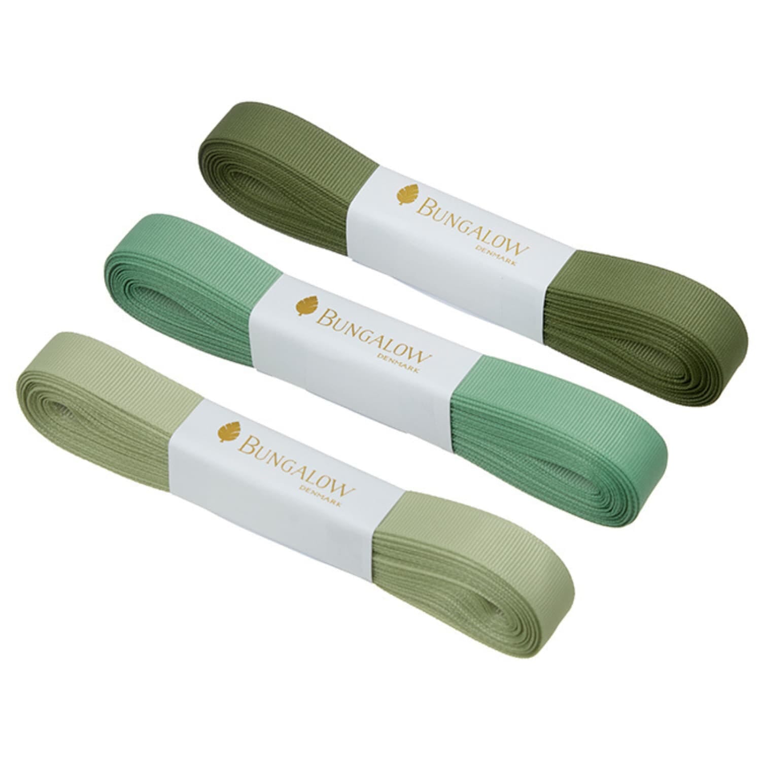 Gavebånd Grosgrain 16 mm Sage – sett med 3 stk á 10 m er et elegant båndsett i harmoniske grønntoner som setter prikken over i-en på gaveinnpakning, dekor og kreative prosjekter.