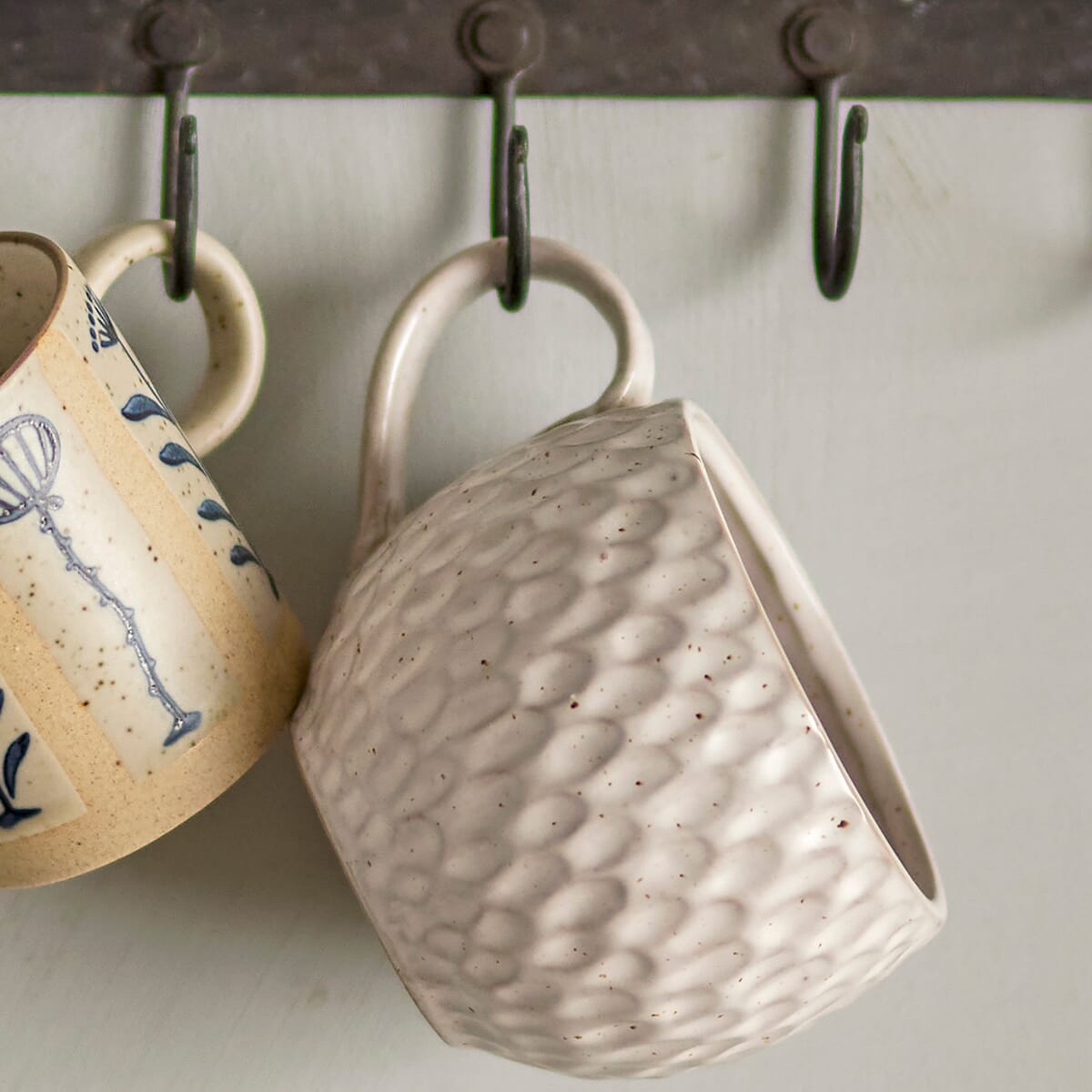 Maian Kruset vil gi deg den beste kaffedrikkingsopplevelse. Med sin lyse nyanse og det inntrykksfulle mønsteret som er preget på overflaten, kombinerer dette kruset både taktil nytelse og en vakker estetikk. Hver kopp er en liten kunstverk i seg selv, og det kan være små variasjoner i glasuren som gir hvert krus sitt eget særpreg. Nyt din favorittkaffe eller te i stil med Maian Kruset, som gir en unik og vakker følelse.