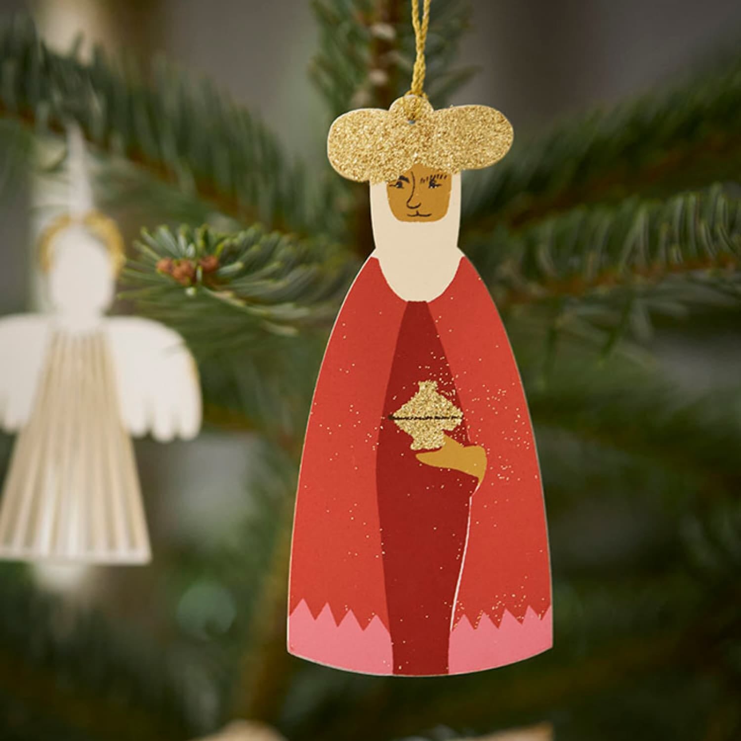 Dette nydelige settet består av tre papirdekorasjoner formet som De Tre Vise Menn, hver med delikate glitterdetaljer som gir et elegant og stemningsfullt preg.