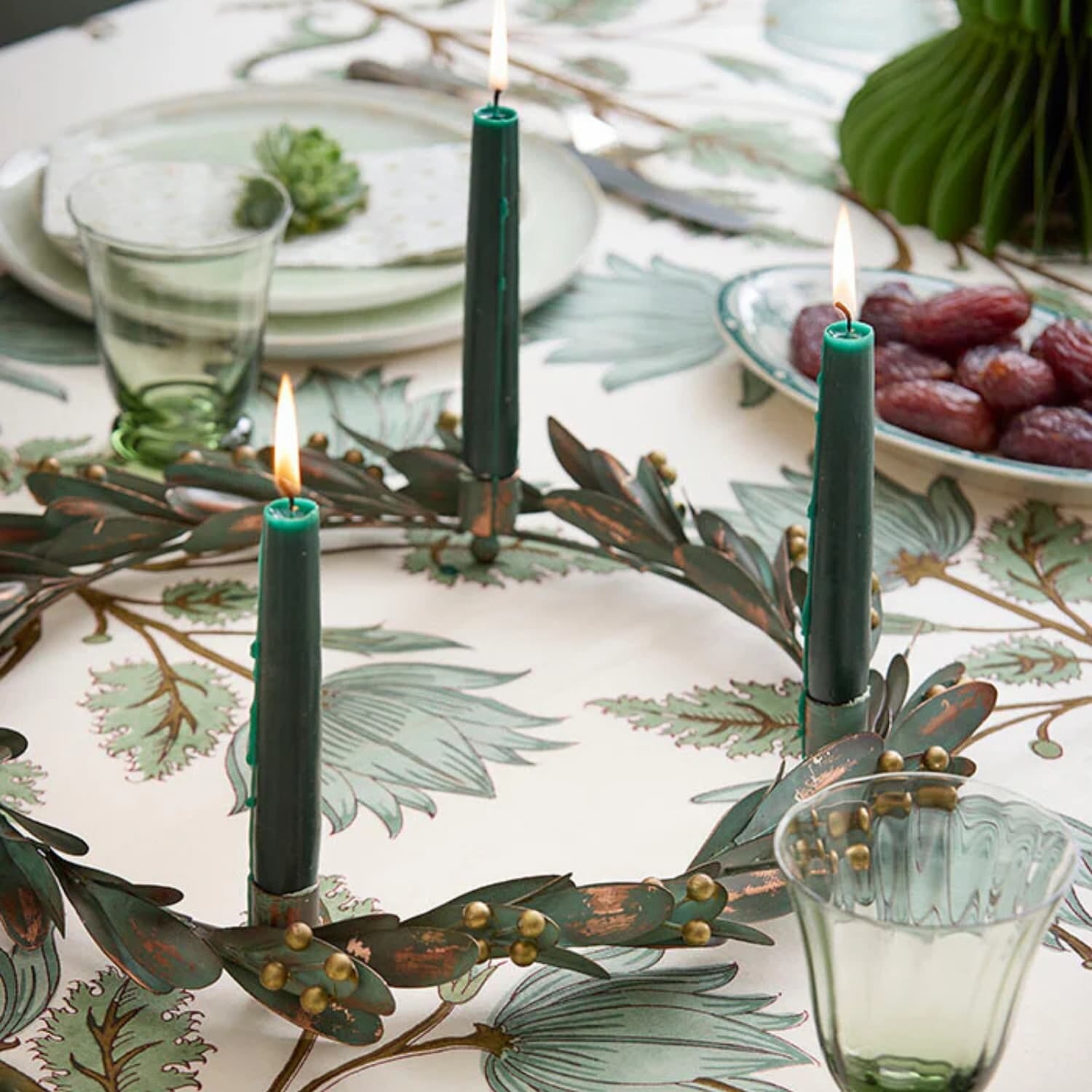 Adventslysestake Goldberry Ø32 cm Ming er en vakker og stemningsfull lysestake, utsmykket med blad- og gulldetaljer som gir et elegant og tradisjonelt uttrykk.