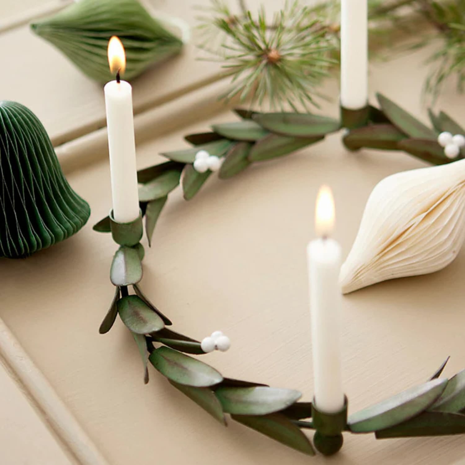 De elegante blad-detaljene slynger seg langs basen og gir lysestaken et poetisk og tidløst uttrykk – perfekt til adventstiden, men også vakker som dekor året rundt.