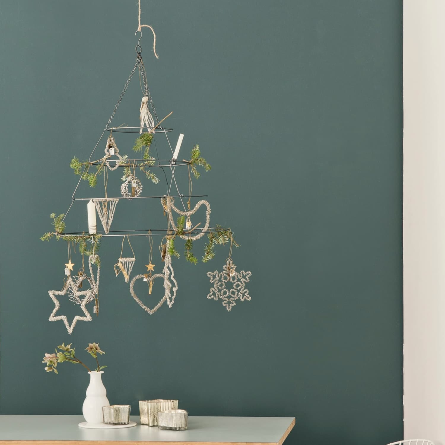 Med sin imponerende høyde på 60 cm fungerer den som et iøynefallende midtpunkt som kan henges i vinduet, over spisebordet eller plasseres mot en vegg. Den enkle, men tidløse formen gjør den til en perfekt base for kreativ styling – pynt den med granbar, kongler, lyslenker eller favorittornamentene dine for å skape et helt personlig uttrykk.