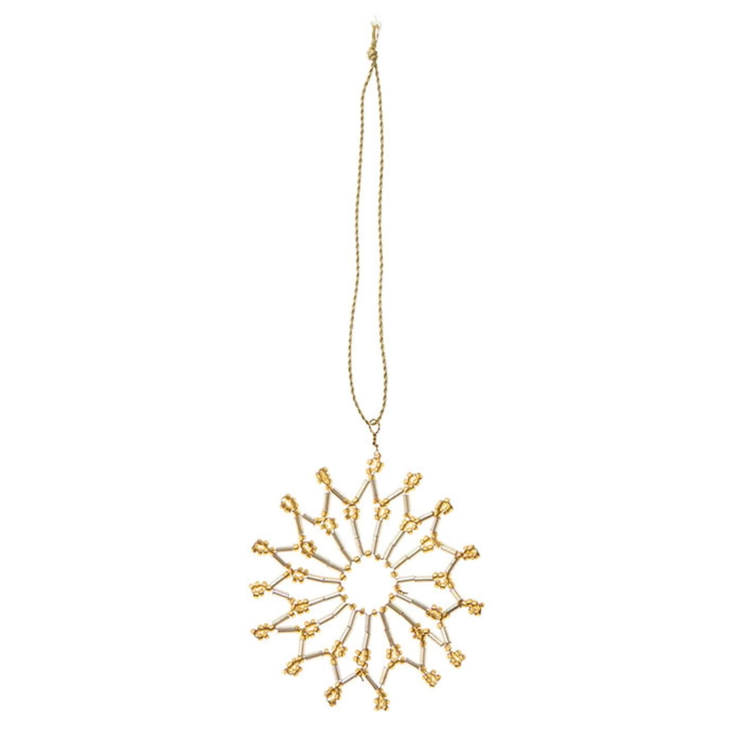 Med sitt snøkrystall-inspirerte design, dekorert med glitrende glassperler i gull- og sølvnyanser, skaper den et stemningsfullt og elegant uttrykk i julepynten.