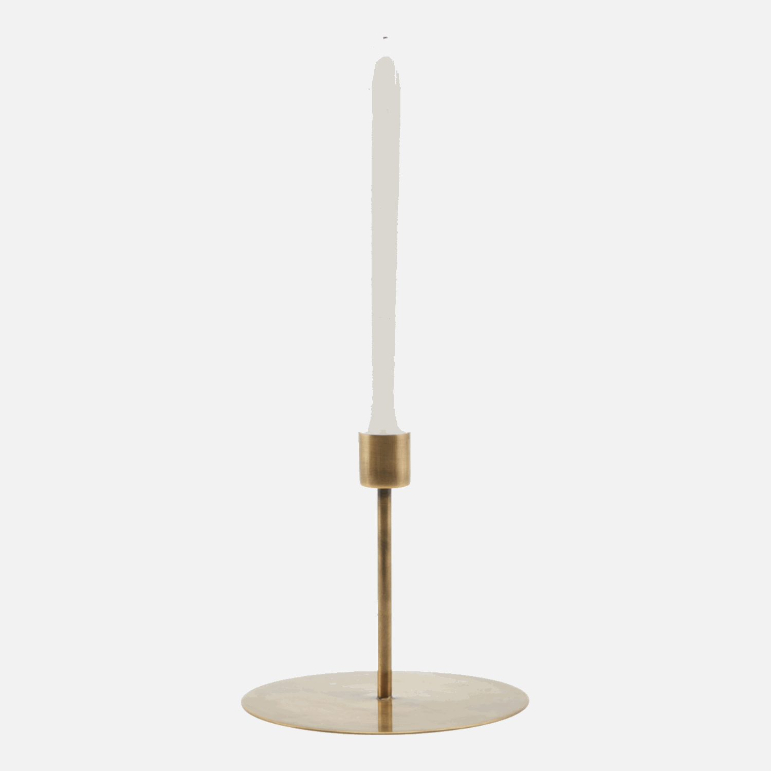 Den er designet for å passe stearinlys med en diameter på 2 cm, og gjør seg spesielt godt i kombinasjon med andre lysestaker i forskjellige høyder og materialer for et personlig og levende uttrykk. Den varme messingtonen tilfører en subtil eleganse og en rå kant som passer like godt i moderne som i rustikke hjem.