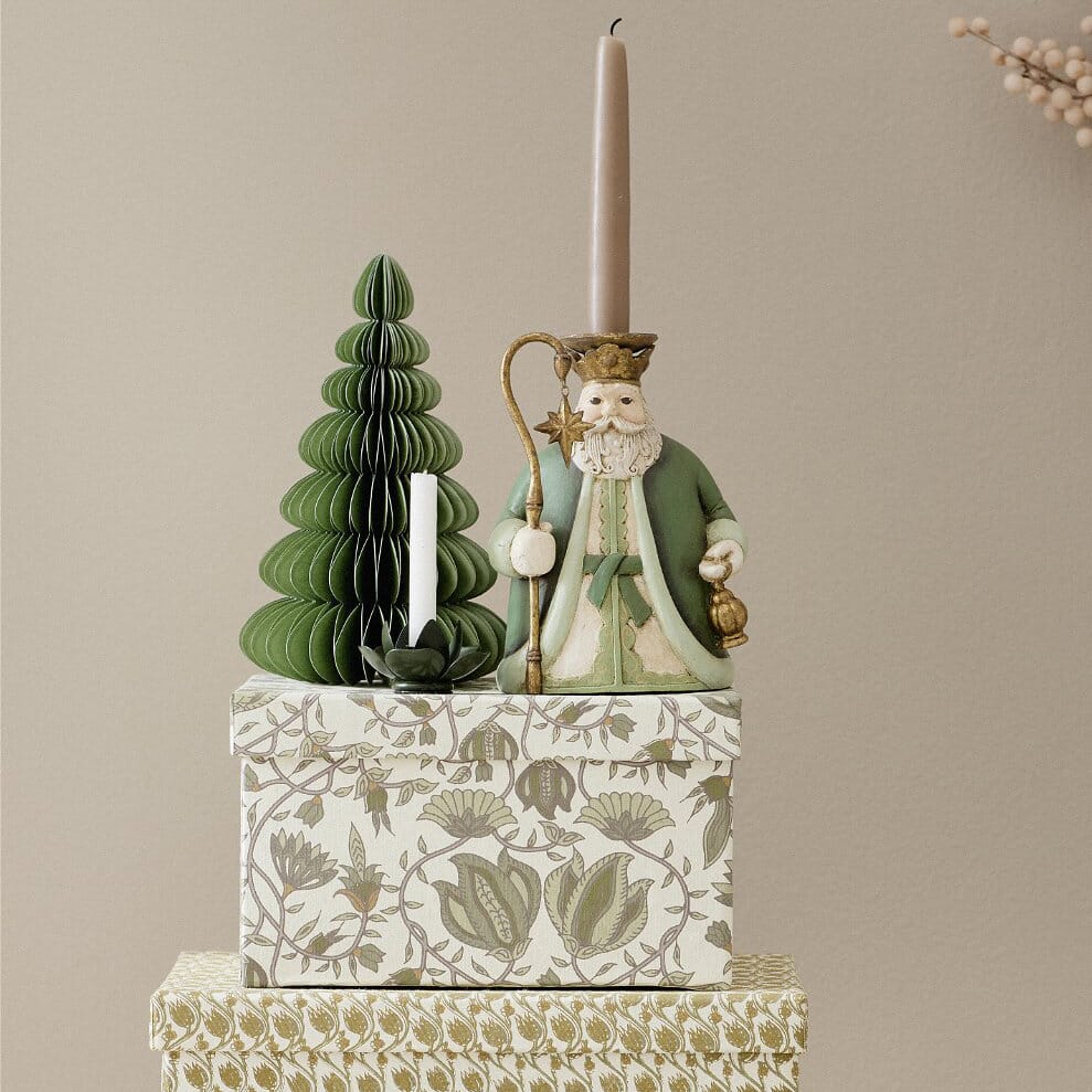 Helt uimotståelig lysestake fra danske Bungalow laget av harpiks og metall. Denne søte nissefaren har laget plass til et lys i hatten sin og kommer på besøk hver jul. Ta en titt på noen av de flotte stearinlysene vi har sånn at nissen blir fornøyd!