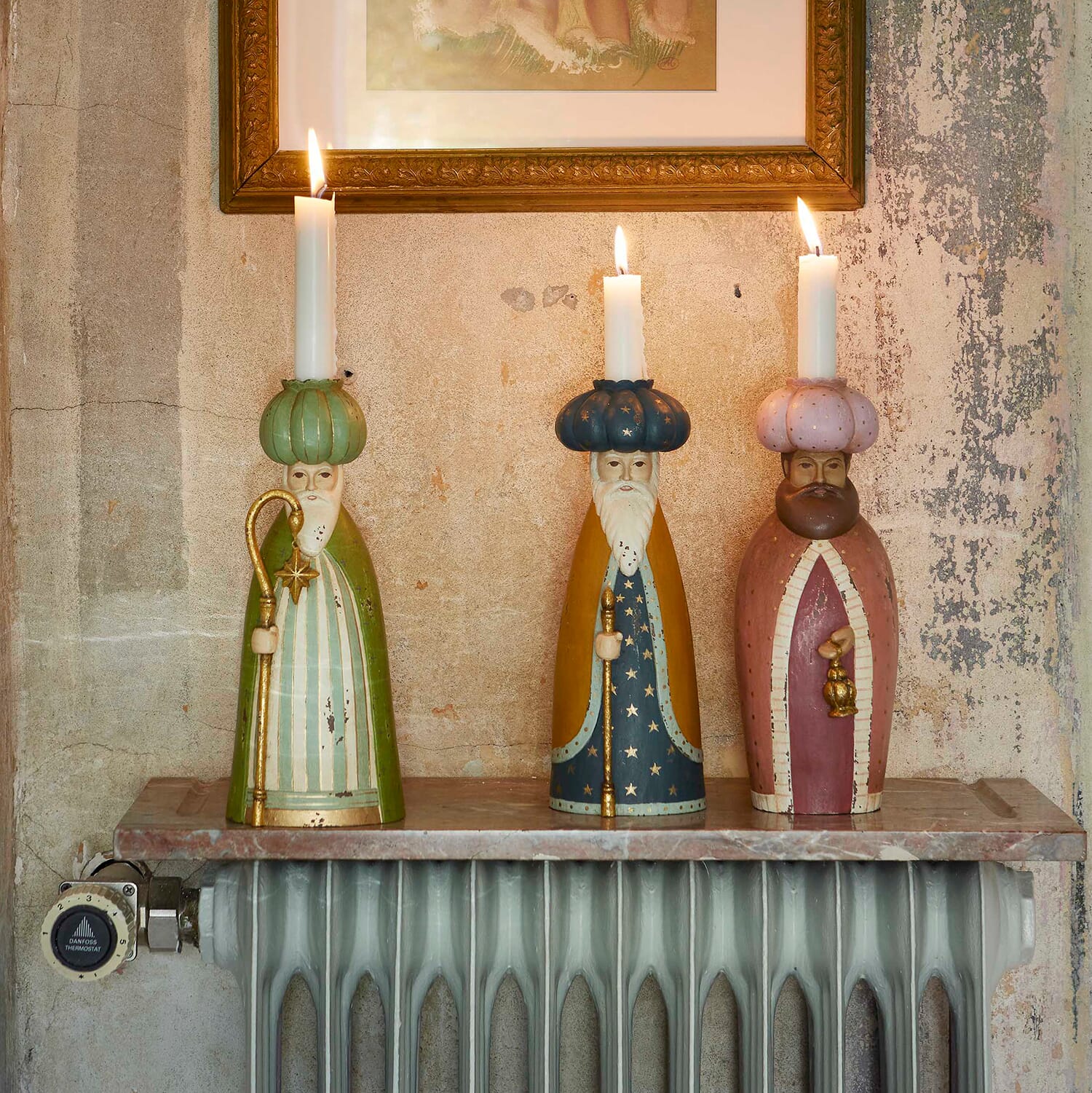Figurene er støpt og dekorert for hånd. Ta en titt på noen av de flotte stearinlysene vi har så de kan se når de vandrer i mørket.