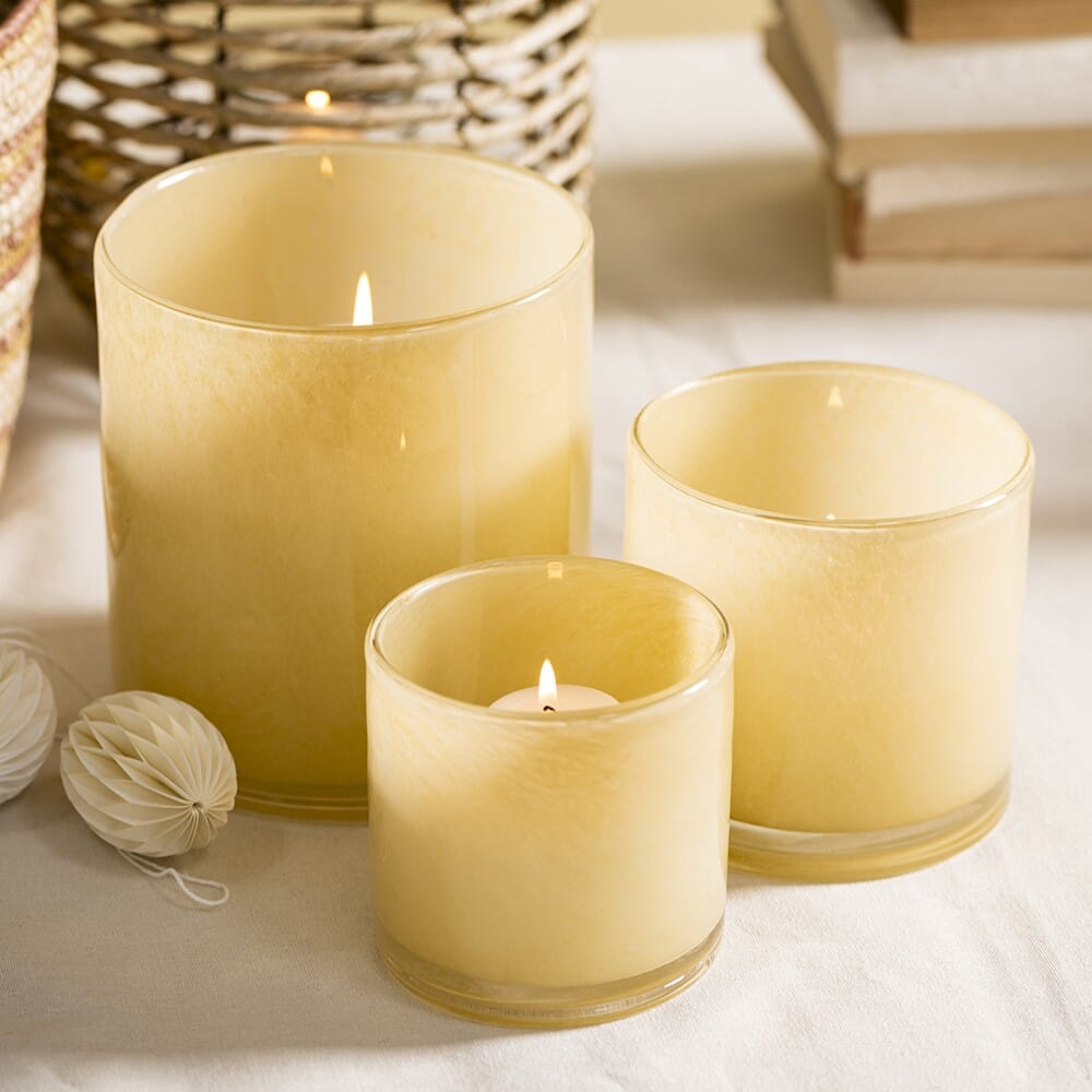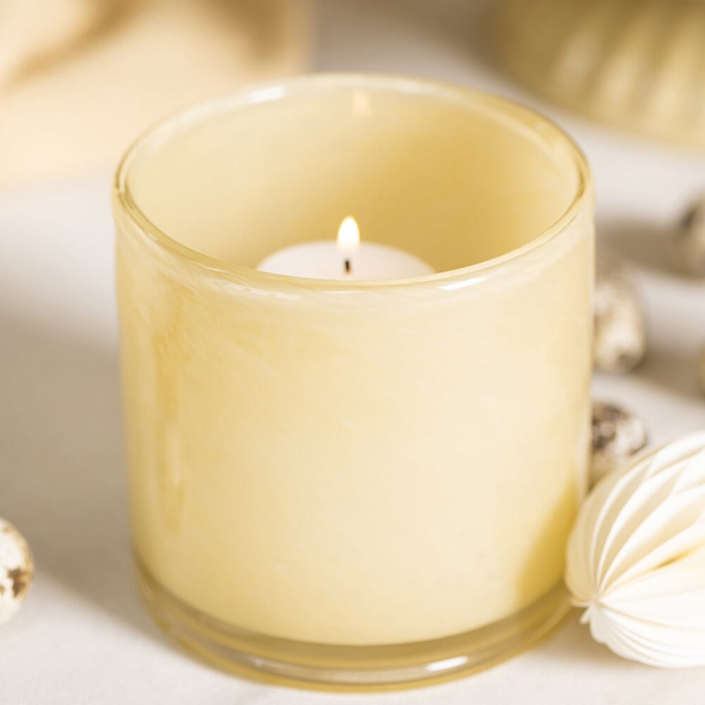 Denne lysholderen fra danske IB Laursen er laget av munnblåst opalglass og har et enkelt, sylinderformet design. Glasset er gjennomfarget, så fargen vil ikke falme ved rengjøring. Du kan plassere blokklys eller telys direkte i den for en vakker lyseffekt, da det opale glasset sprer lyset på en herlig, myk og behagelig måte. Vær oppmerksom på at "Venecia" lysholderne ikke er helt like i høyde, vekt og tykkelse på glasset, siden de er håndlaget ved munnblåsing.