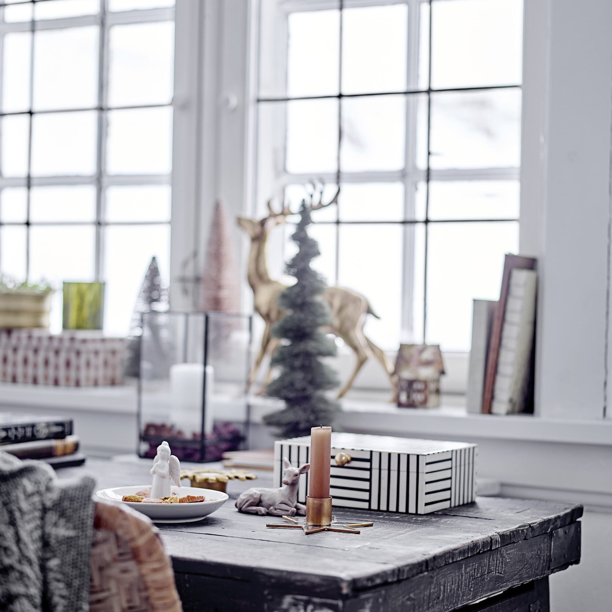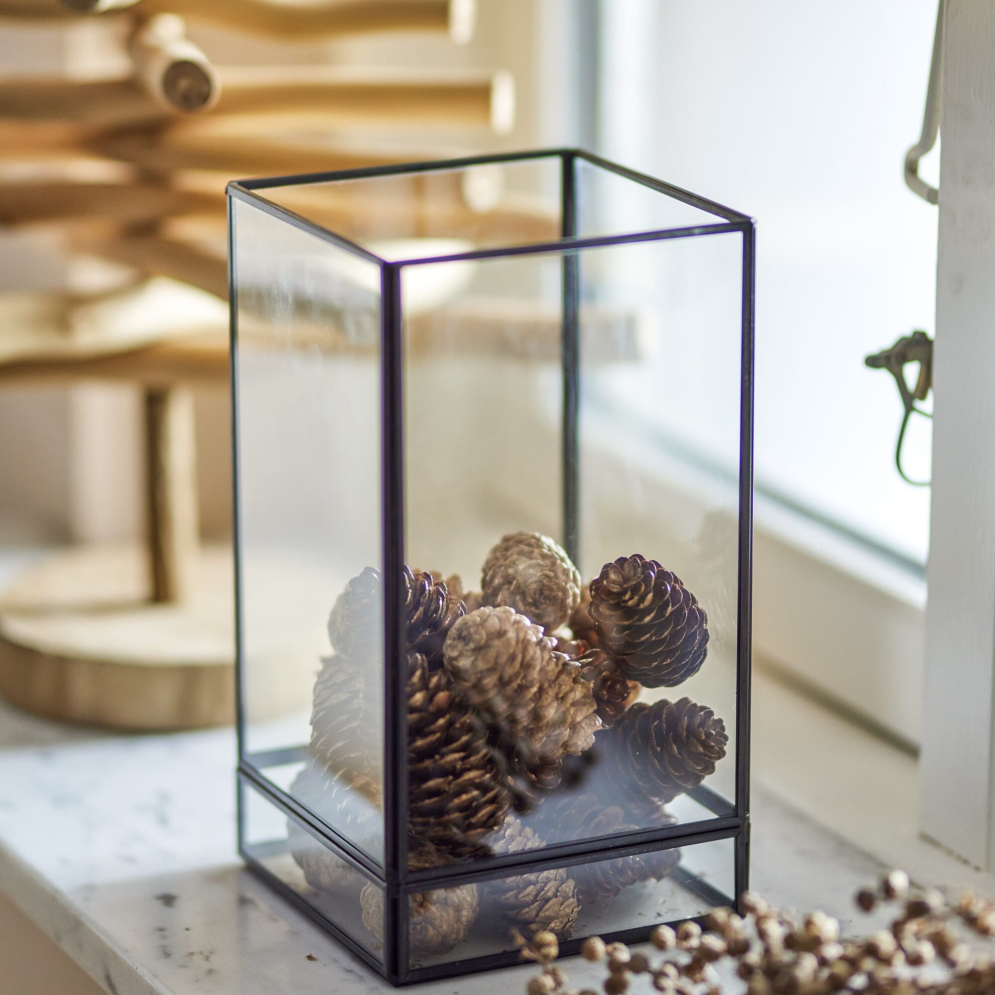 Skru opp julestemningen med Filula lyslykten fra Bloomingville. Lyslykten har et moderne design med glass og svart stativ. Style den med kongler, juleornamenter og et blokklys for å fullføre uttrykket.