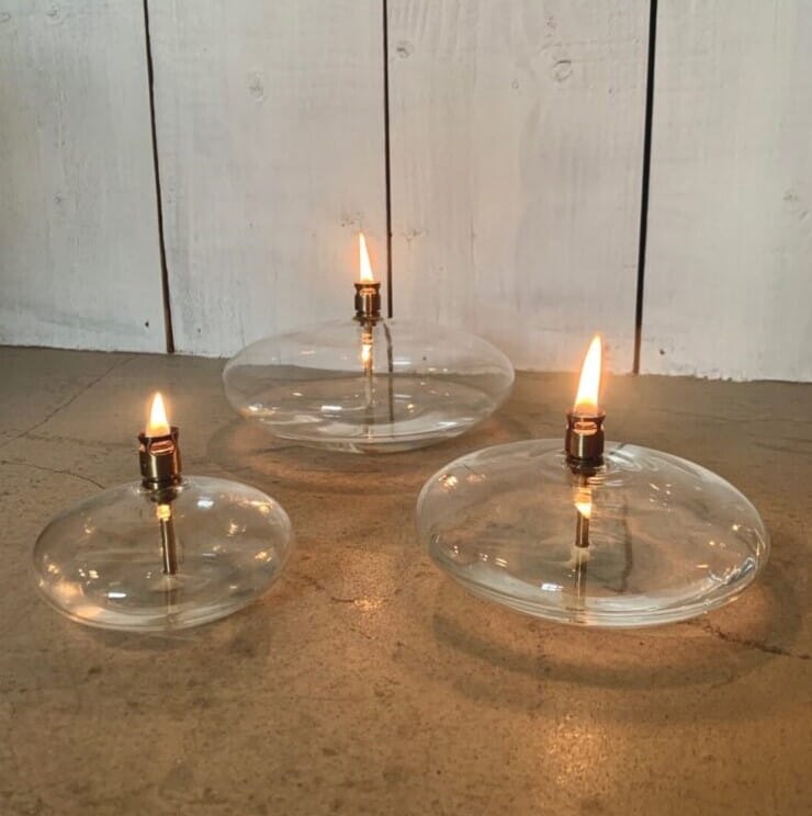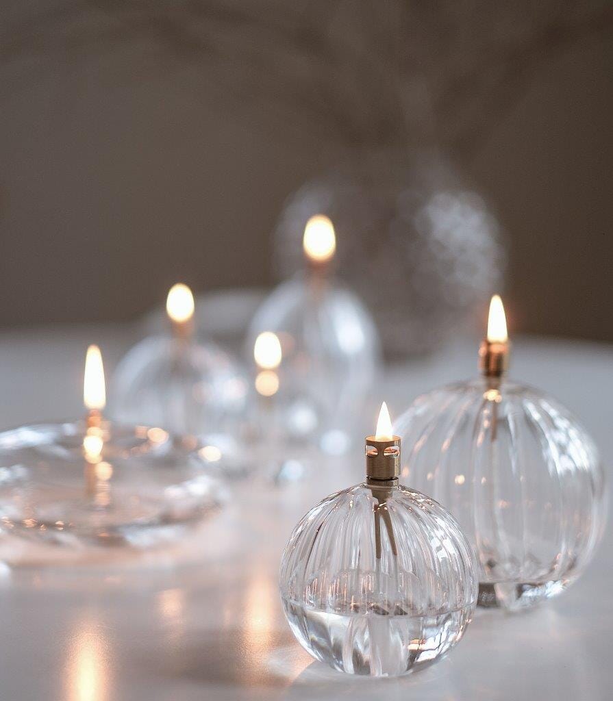 Vakker oljelampe fra Peri Design. Oljelampen er har en lav rund form. Du trenger bare fylle på lampeolje. For å unngå søl når du fyller på lampen, så anbefaler vi å kjøpe trakten i samme serie.
