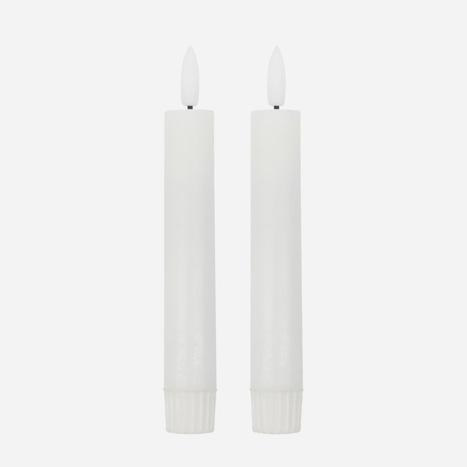 De hvite LED-lysene har en naturtro flammeeffekt som flakker på en måte som minner om ekte lys, samtidig som den myke parafinvoks-overflaten gjør at de ser ut som klassiske stearinlys. Perfekt for å skape hygge i mørke vintermåneder, til middagsselskaper, koselige kvelder eller som del av en elegant borddekking.