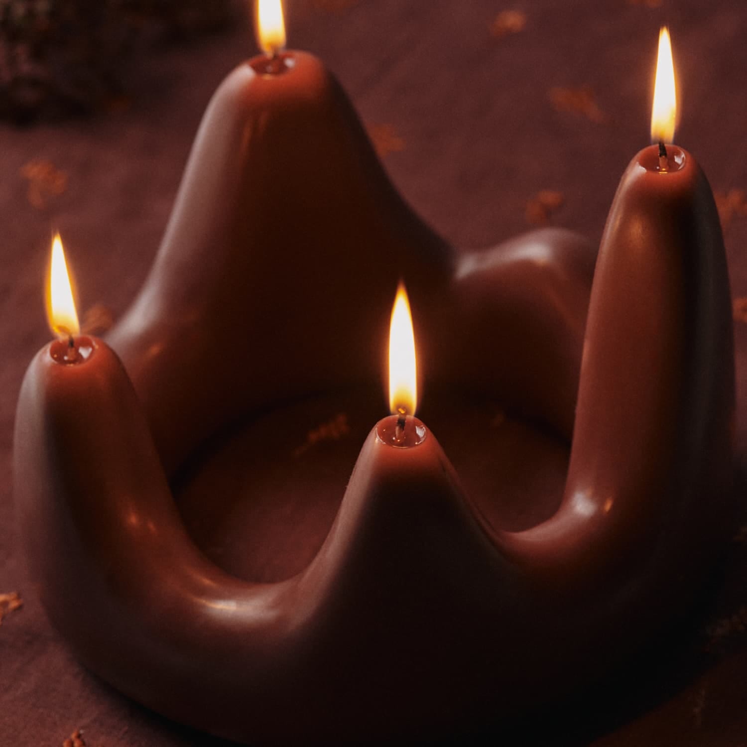Adventslys Stala Dark Grape er et skulpturelt og stemningsfullt lys inspirert av naturens stalagmitter.
