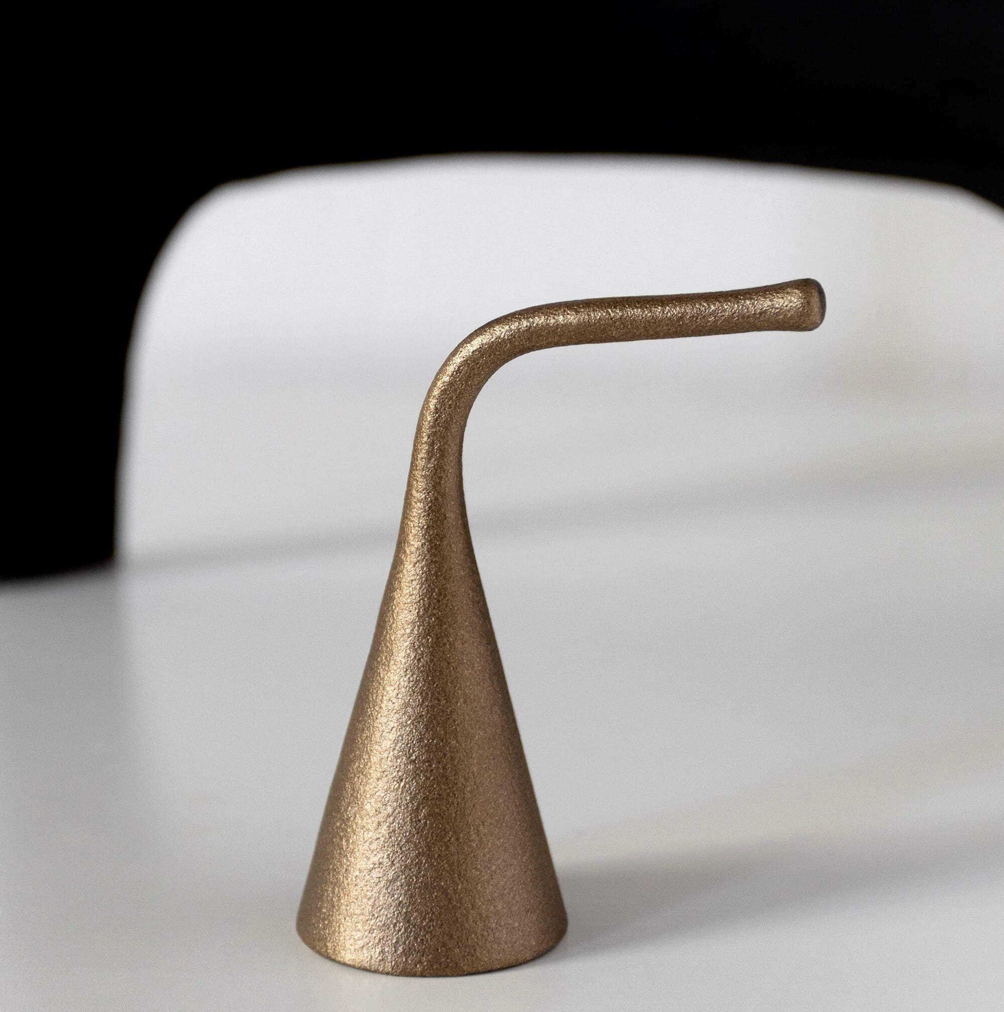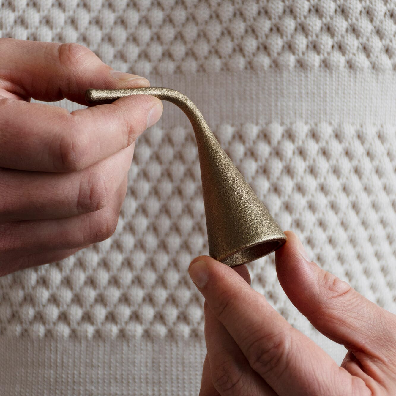 I stedet for en standard bjelle på en lang stang, har Sammu en leken og skulpturell form som føles levende. Den minner om en fremmed frukt – kjent, men samtidig unik. Den organiske formen og den matte messingfinishen skaper en perfekt balanse mellom funksjon og estetikk.