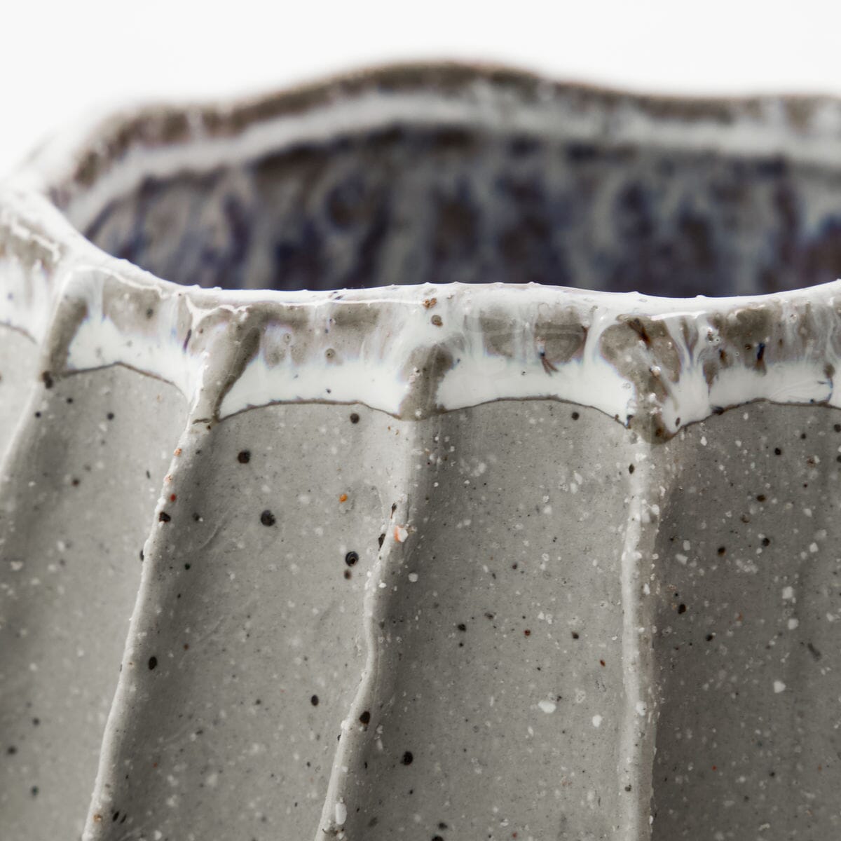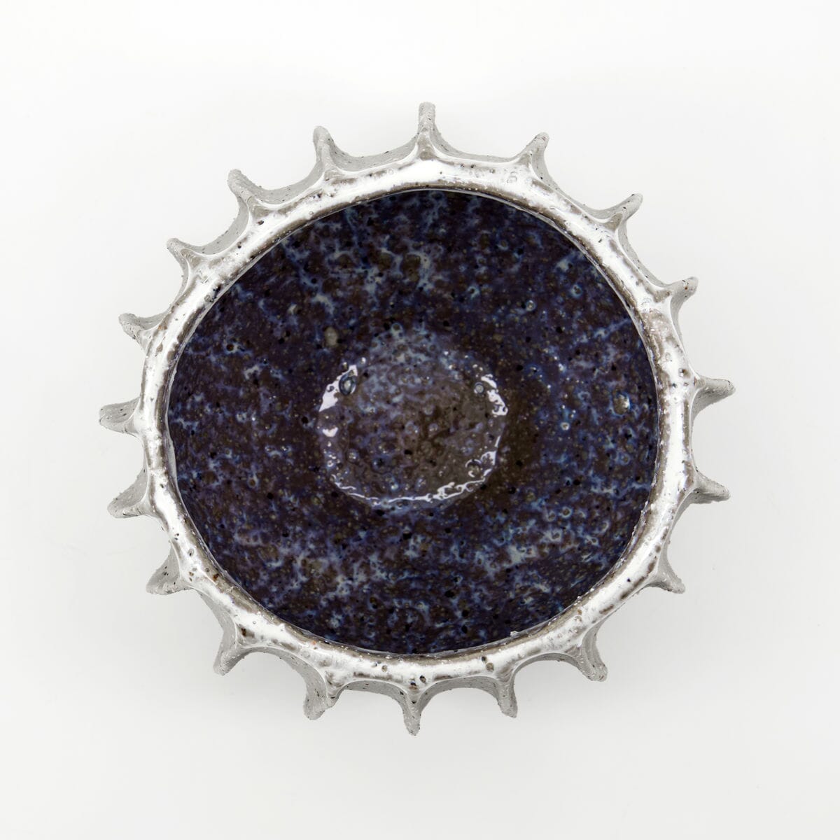 Kul blomsterpotte fra House Doctor i keramikk. Blomsterpotten er vakkert utformet for å tilføre teksturert eleganse og et unikt rillet design. Den skiller seg ut med sin spekkede finish og karakteristiske sol-lignende base som blander funksjonalitet med kunstneriske elementer. Plasser en liten plante i den, eller kanskje noen urter til kjøkkenbenken, eller som en liten skål.