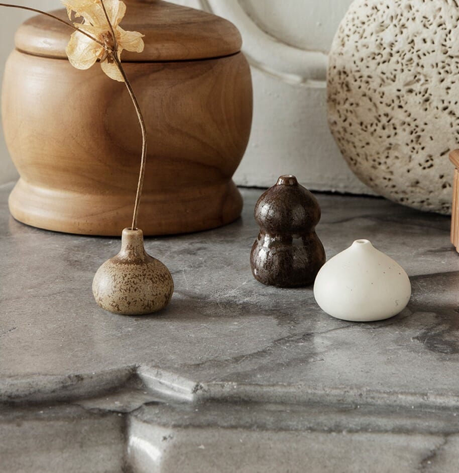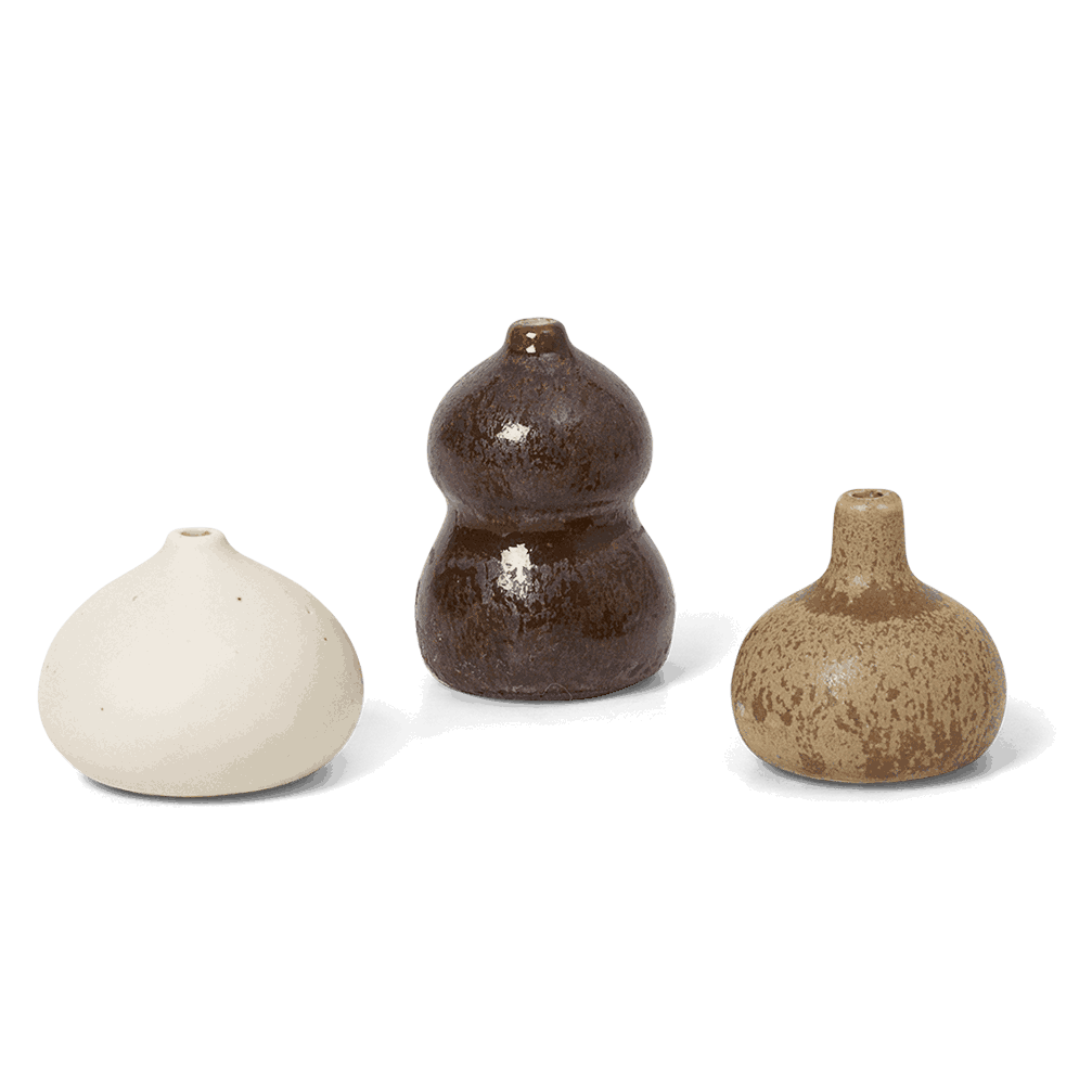 Ett sett med 3 helt nydelige små minivaser fra Ferm Living. Vasene er helt skjønne! De passer også godt til å brenne røkelsespinner fra.