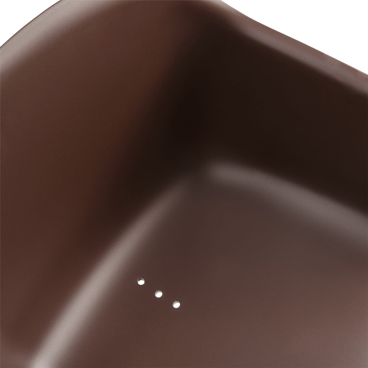 Stolens myke linjer og omsluttende armlener gir overraskende høy komfort, mens dreneringshull og værbestandige materialer gjør den perfekt for utendørs bruk – fra terrasse til takhage. Den pulverlakkerte stålbasen gir ekstra slitestyrke og et raffinert, matt uttrykk.