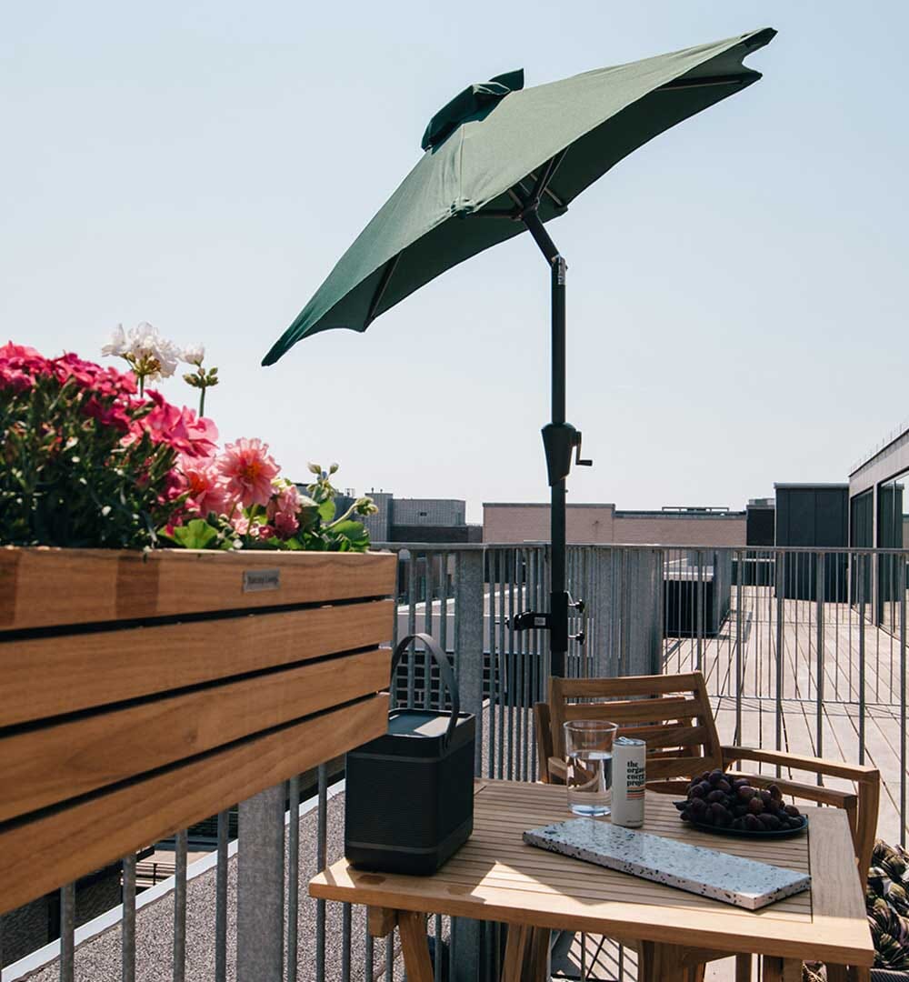 Parasollbeslaget kommer med universalt feste og du trenger hverken skruer eller verktøy.
