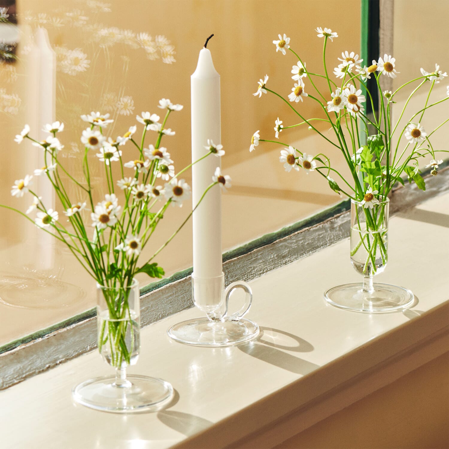 Med sitt slanke stett og sjarmerende løkkehåndtak, er den enkel å flytte rundt, mens den brede basen sørger for å fange opp eventuell dryppende voks. Tilgjengelig i både klart og farget glass, kan Tiny Candleholder brukes alene eller i kombinasjon med andre varianter og HAY-lysestaker for å skape stemningsfulle dekorasjoner på hyller, bord og vinduskarmer.