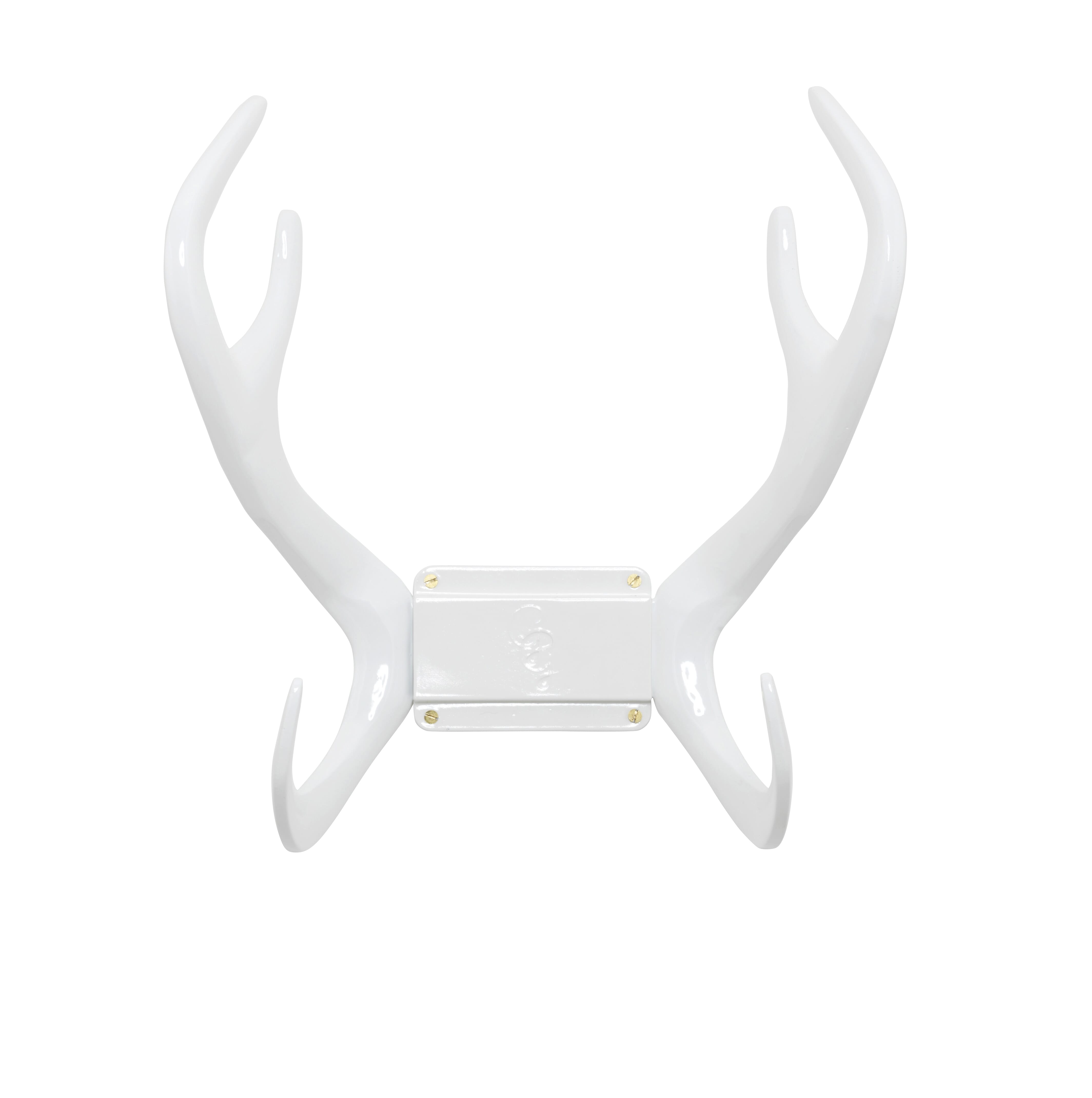 Sett med hvit vannslange, hvit Reindeer veggfeste og hvit vanningspistol.