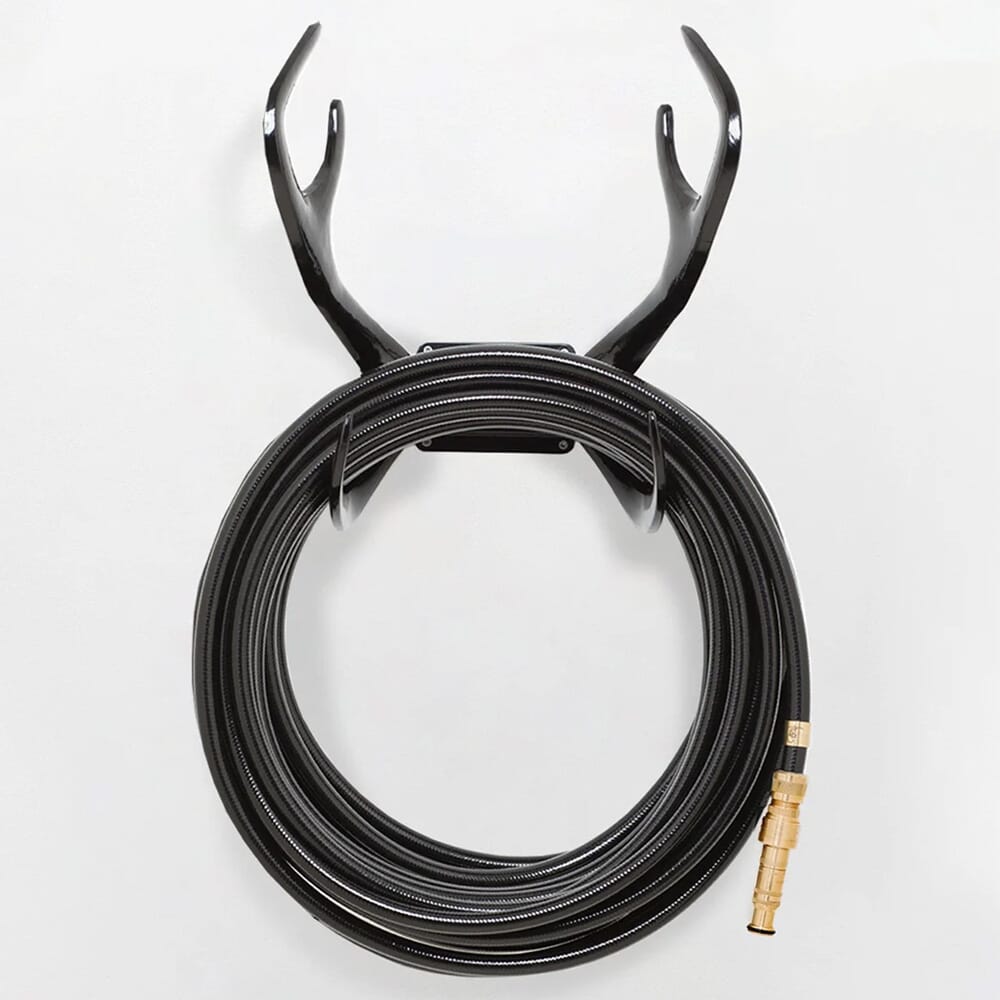 Sett med svart Reindeer veggfeste, svart hageslange og gull munnstykke.