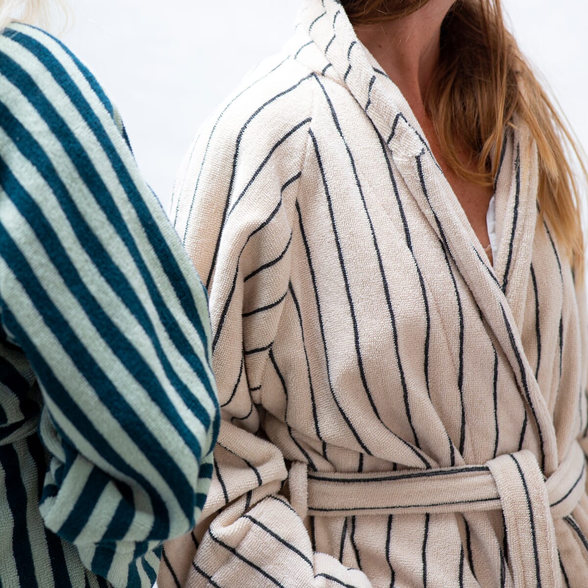 Laget i en kjemmet 385g Oeko-Tex bomull er badekåpen også svært absorberende. Det gjennomtenkte designet har store praktiske lommer, et stort jakkeslag, mykt belte – og den føles bare behagelig og myk å ta på. Du kan bevege armene fritt, enkelt stramme beltet og den er lang nok til å dekke knærne når du setter deg ned.