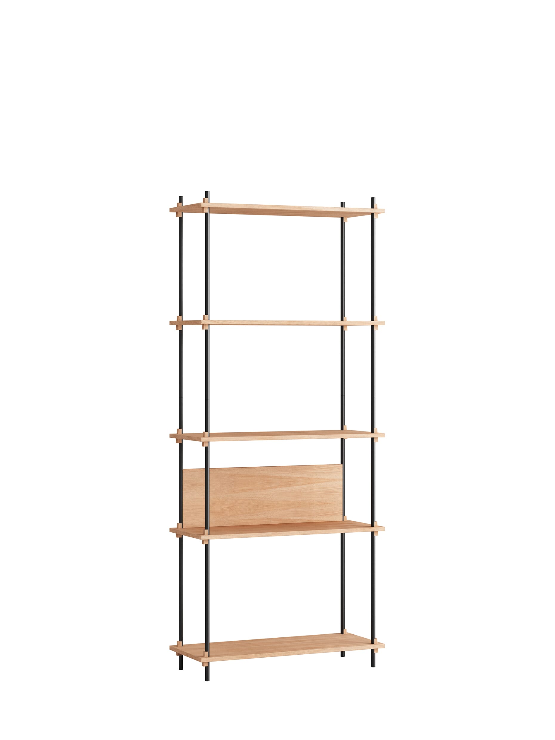 Hyllesystemet fra Moebe gir deg full frihet til å bygge ditt eget møbel som passer akkurat ditt behov. Hylle systemet kan bygges så høyt du vil og så langt du vil, bygg i forskjellig høyder eller rundt hjørner. Den unike konstruksjonen som karakteriserer systemet gjør at du selv kan bestemme om systemet skal brukes som romdeler eller mot en vegg, og kilene som holder hyllene på plass gjør at du selv bestemmer høyden på hver enkelt hylleplate.