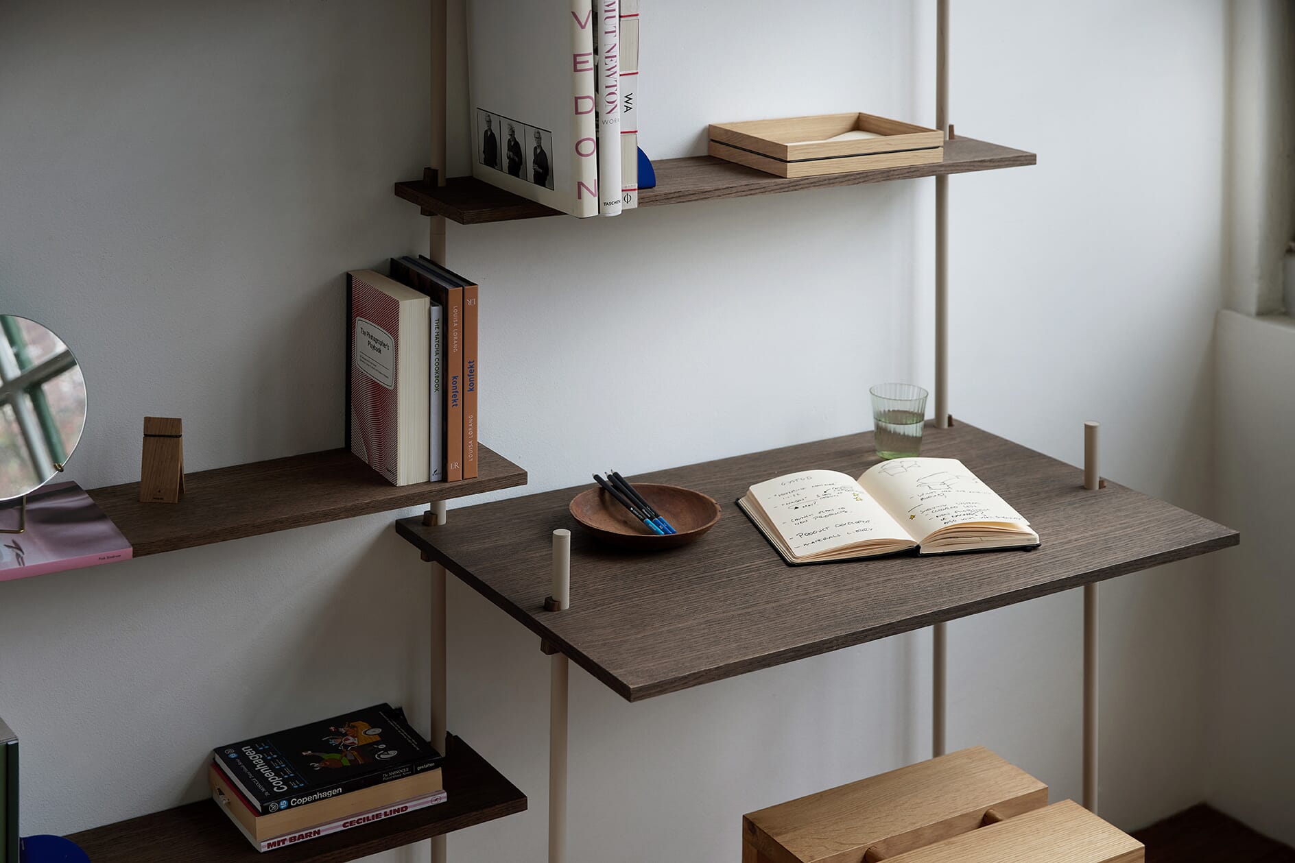 Hyllesystemet fra Moebe gir deg full frihet til å bygge ditt eget møbel som passer akkurat ditt behov. Hylle systemet kan bygges så høyt du vil og så langt du vil, bygg i forskjellig høyder eller rundt hjørner.