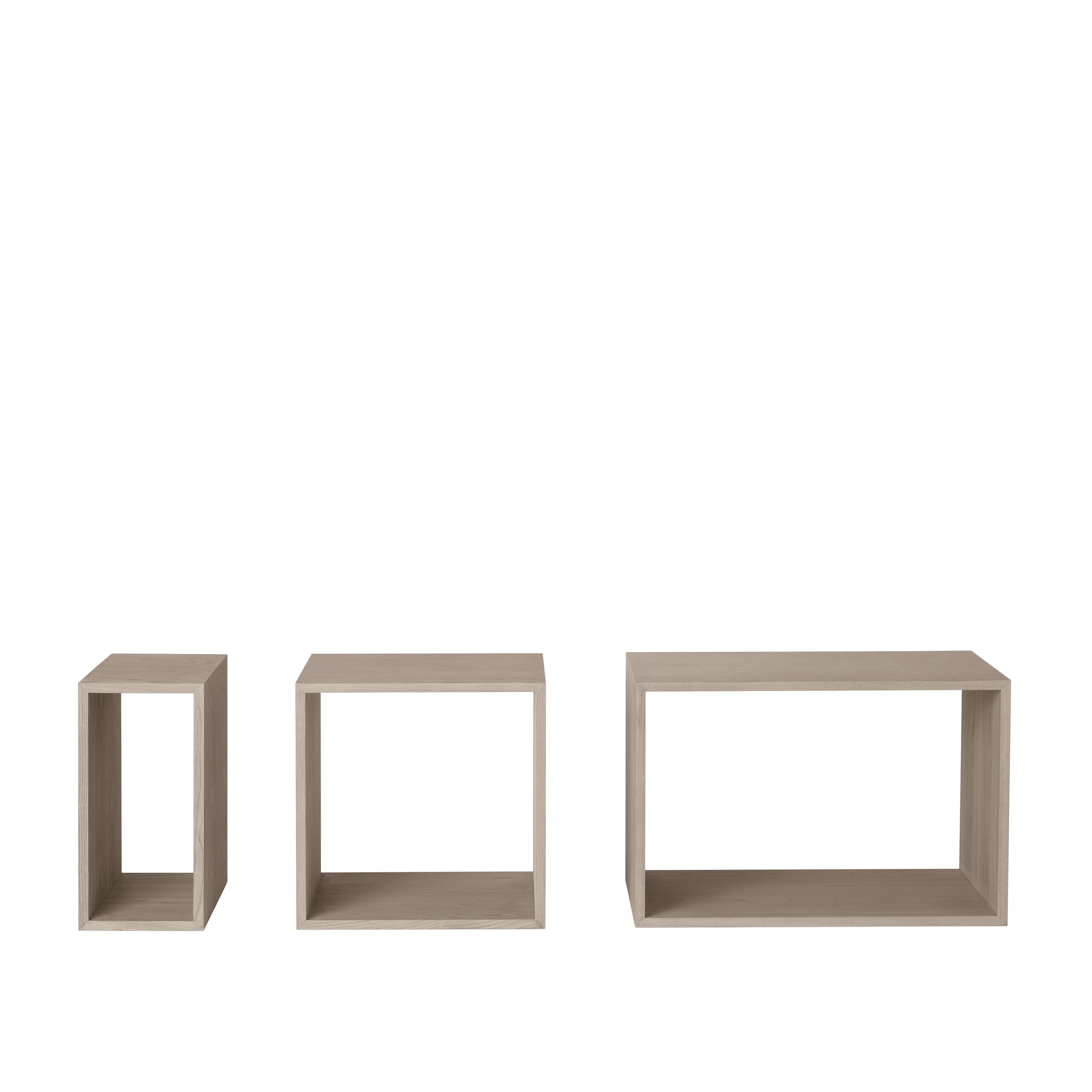 Stacked er et modulbasert hyllesystem fra Muuto som er designet av JDS-Architects. De ulike størrelsene gjør det mulig å bygge ditt helt unike hyllesystem som for eksempel TV-benk, skjenk, nattbord, kontorløsning, stuereol etc. Hyllene kan brukes alene, eller du kan bygge opp og stable som du ønsker.