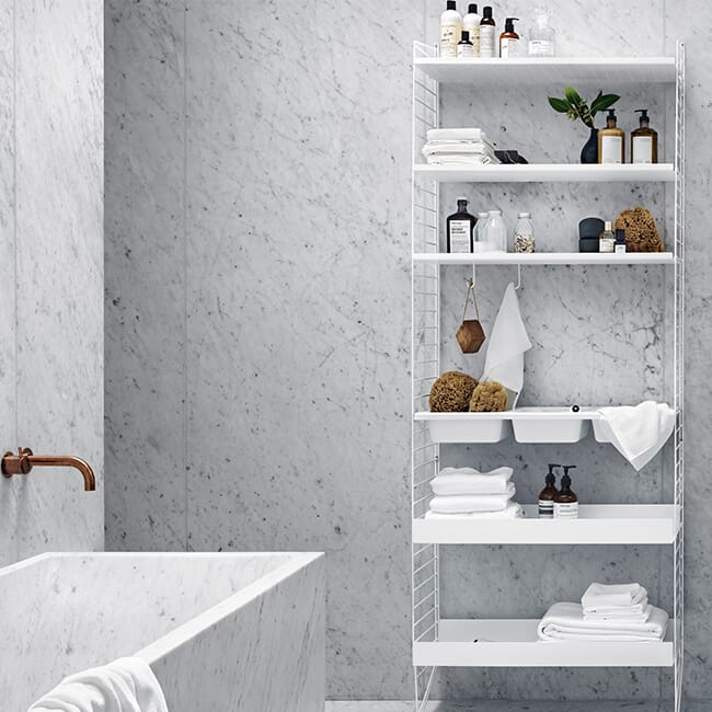Materiale: Lakkert stål, lakkert MDF. Tre finér på variantene eik, sortlakkert ask og valnøtt. Tre er et levende materiale og kan derfor naturlig endre utseendet sitt over tid, spesielt når overflaten blir eksponert for direkte sollys.