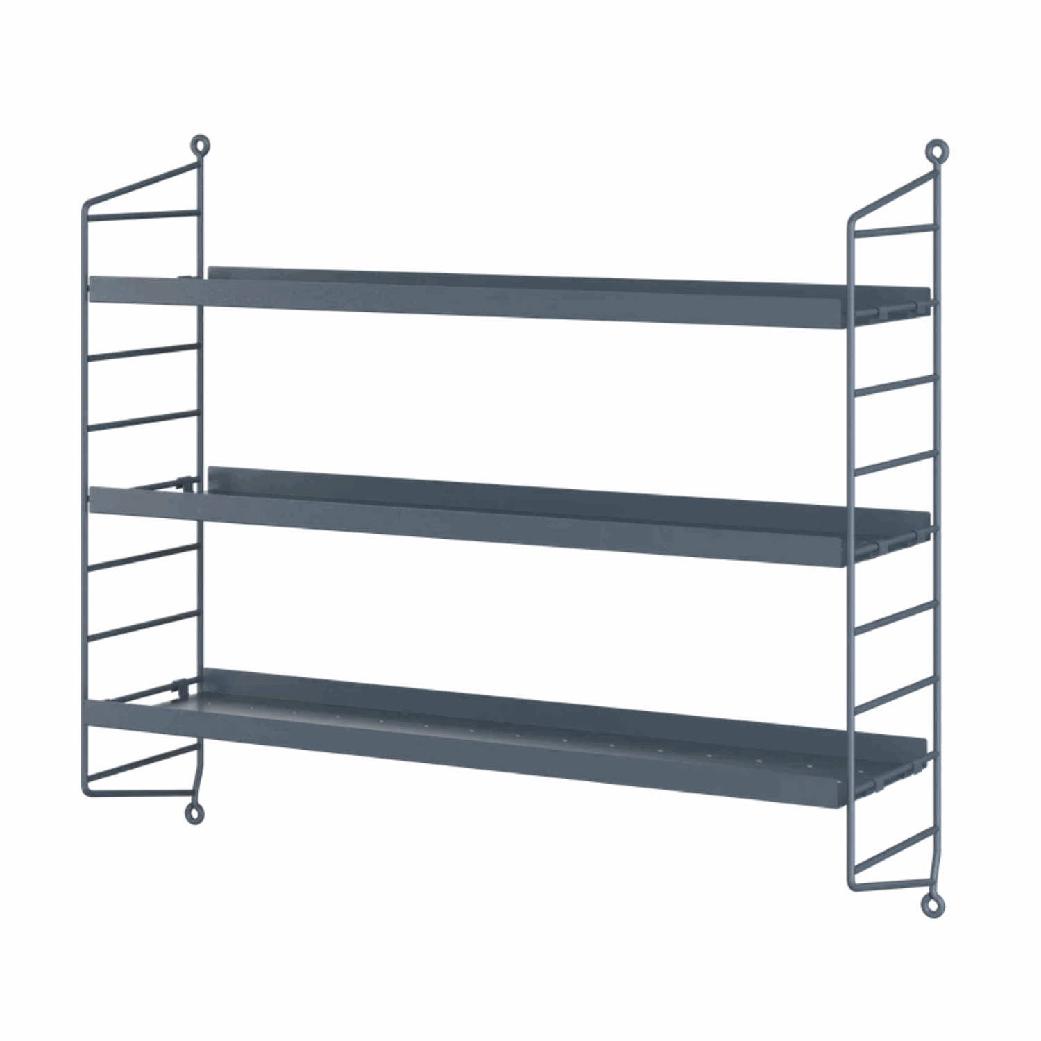 Utforsk den praktiske String® Pocket metallhylle i Sergelgrå.