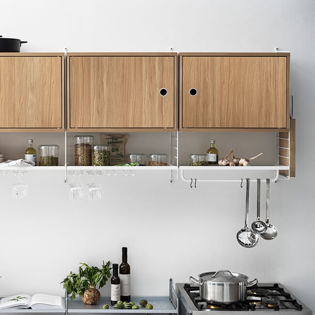 Materiale: Lakkert stål, lakkert MDF. Tre finér på variantene eik, sortlakkert ask og valnøtt. Tre er et levende materiale og kan derfor naturlig endre utseendet sitt over tid, spesielt når overflaten blir eksponert for direkte sollys.