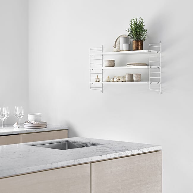 String® Pocket er nå lansert i en utgave i metall, og vi synes denne allsidige hyllen er perfekt til kjøkkenet. Med de perforerte metallhyllene kan du bygge på med tilbehør og skreddersy hyllen etter akkurat de behovene du har for oppbevaring.