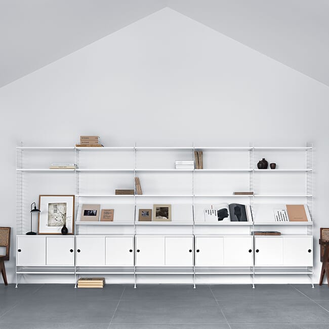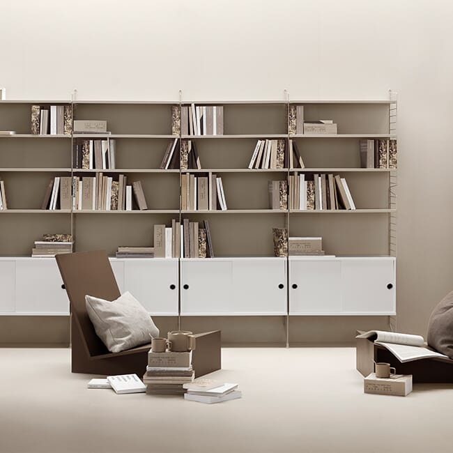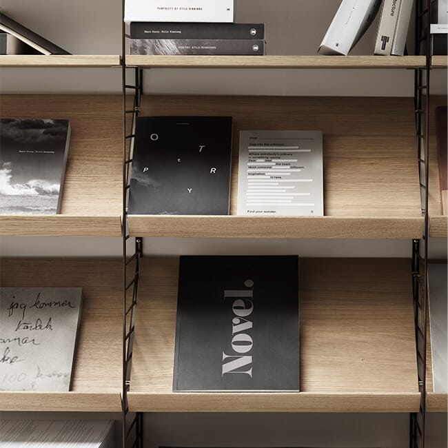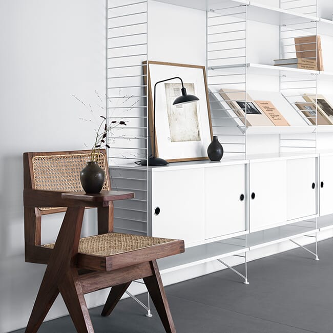 Materiale: Lakkert stål, lakkert MDF. Tre finér på variantene eik, sortlakkert ask og valnøtt. Tre er et levende materiale og kan derfor naturlig endre utseendet sitt over tid, spesielt når overflaten blir eksponert for direkte sollys.