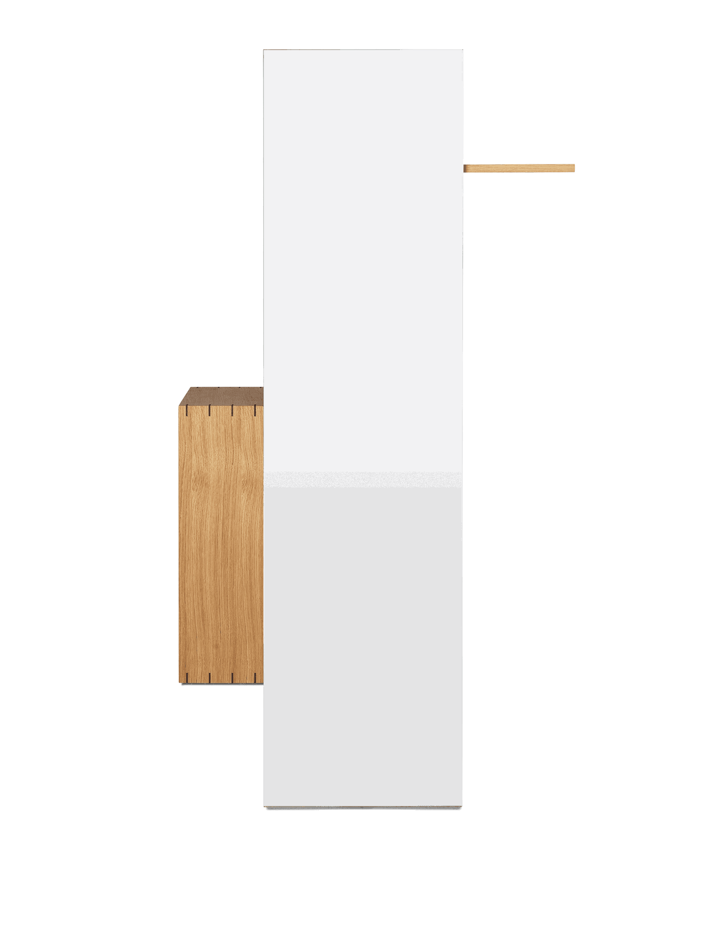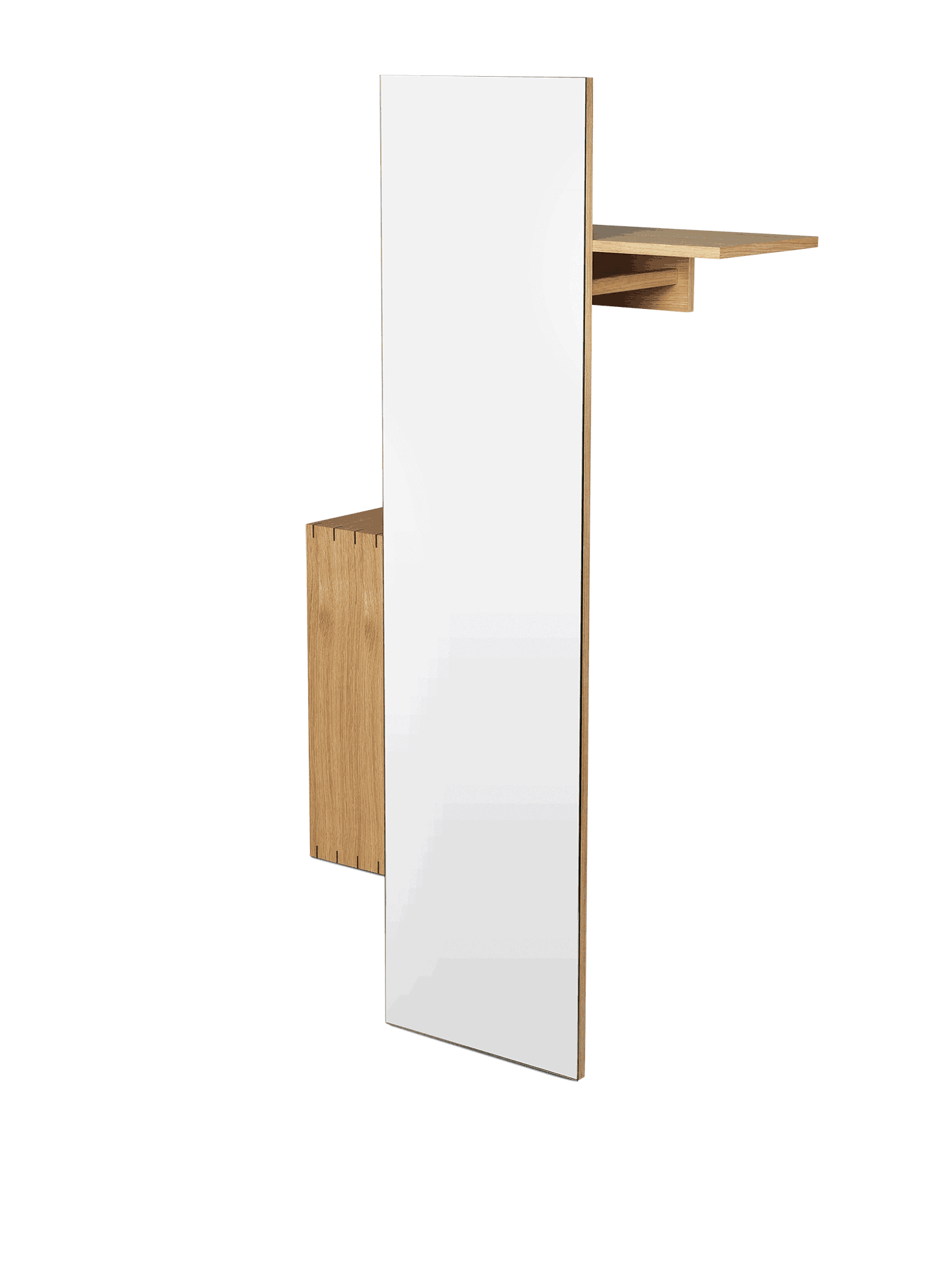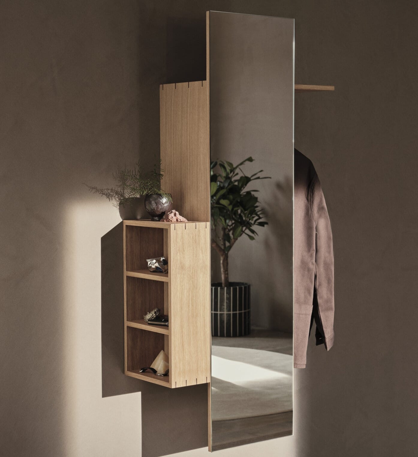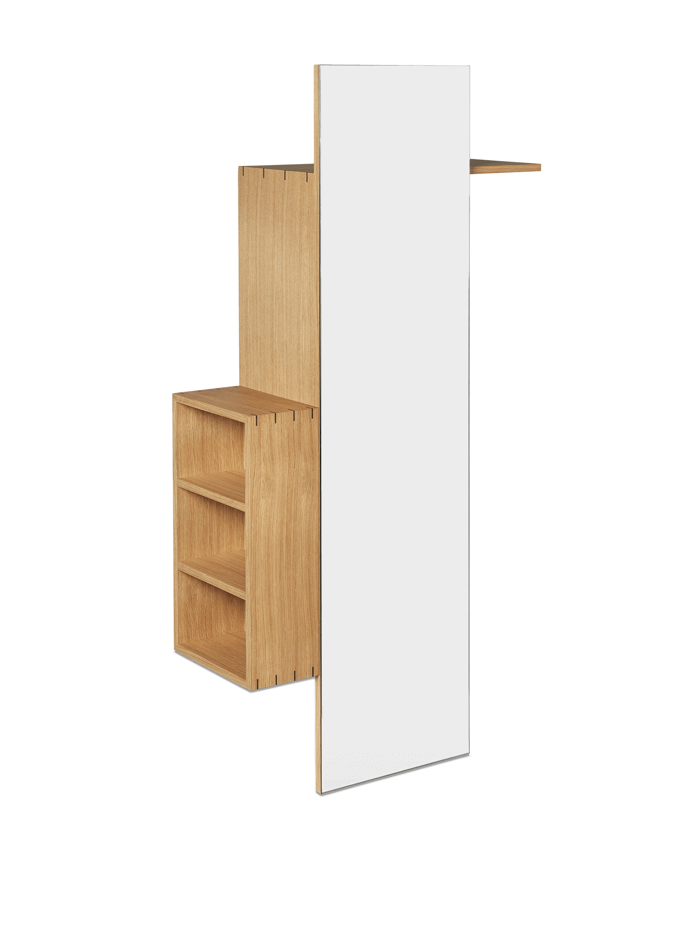 Bon veggskap fra Ferm Living, er et stilig og funksjonell oppbevaringsløsning som sømløst passer inn i ethvert rom. Ideell for gangen eller soverommet. Skapet består av en hylle, et stativ, et speil og praktiske smale hyller på siden, som gir deg mulighet til å oppbevare jakker, vesker, nøkler, hansker og mer.