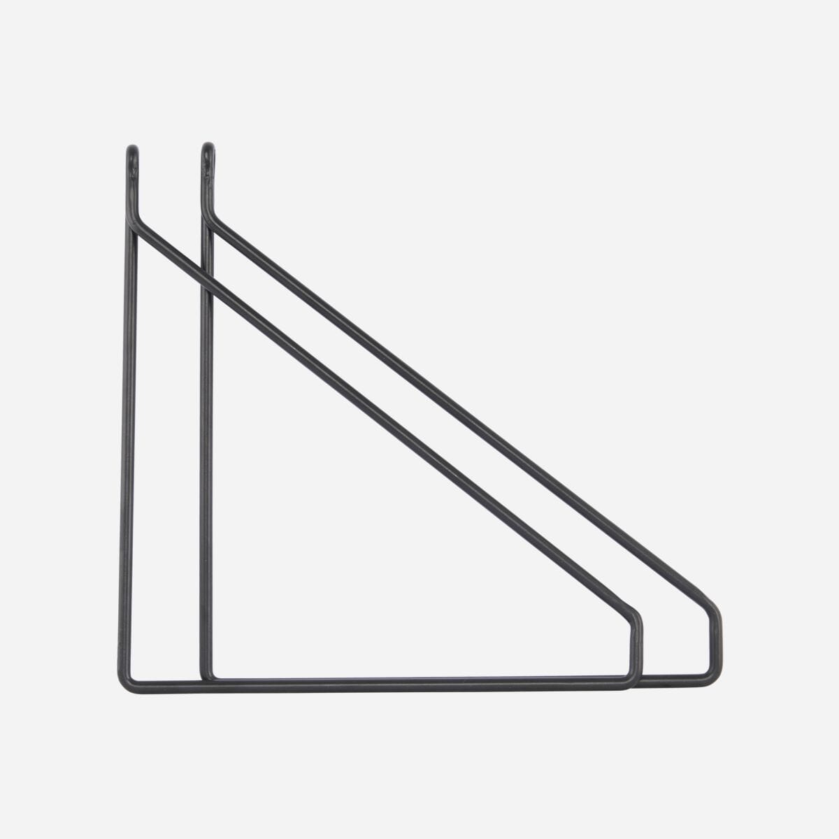 Sett med 2 stk hylleknekte. De to knektene er laget av svartmalt jern, og kommer dermed med et pent og rent utseende. Hyllestøttene gjør det mulig for deg å montere en hylle slik du vil. Det er den perfekte løsningen for soverommet, stuen, kjøkkenet eller gangen.