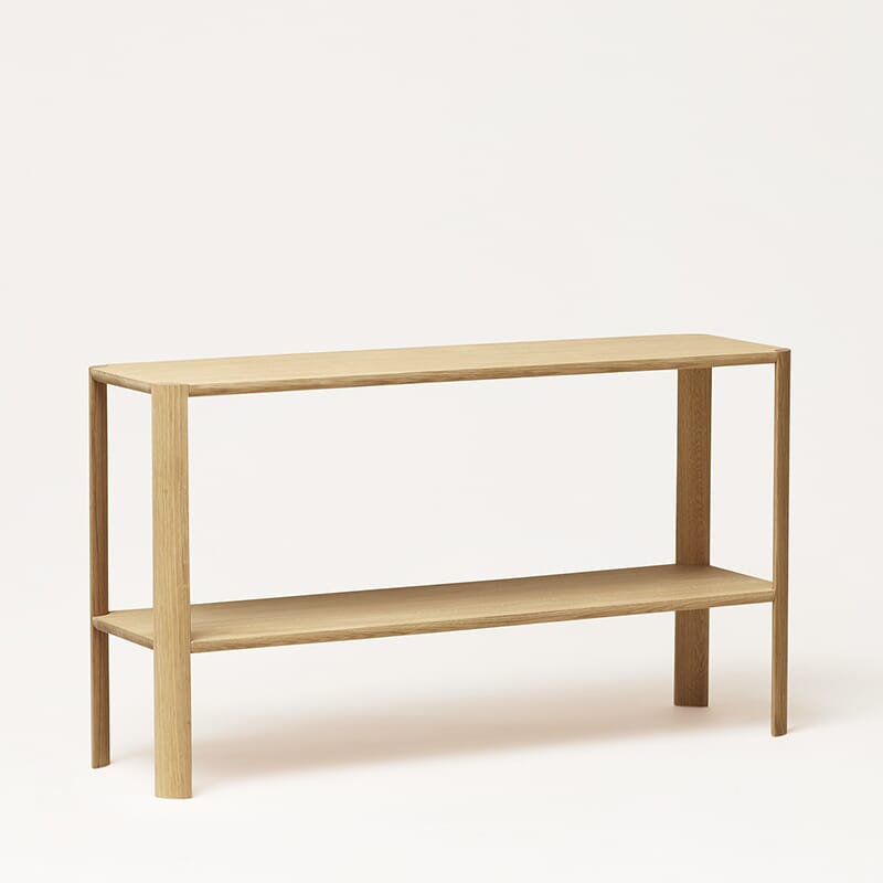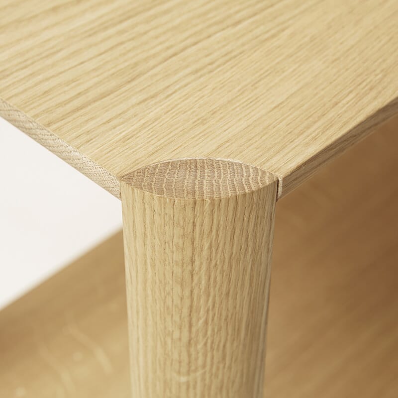 Designet ser flott ut fra alle vinkler, noe som betyr at den kan brukes som skjenk, frittstående hylle eller romdeler. Velg mellom naturoljet og hvitoljet eik. Finnes i flere størrelser. Leveres i sju deler. Pillar oppbevaringsboks M passer fint inn i denne hyllen.