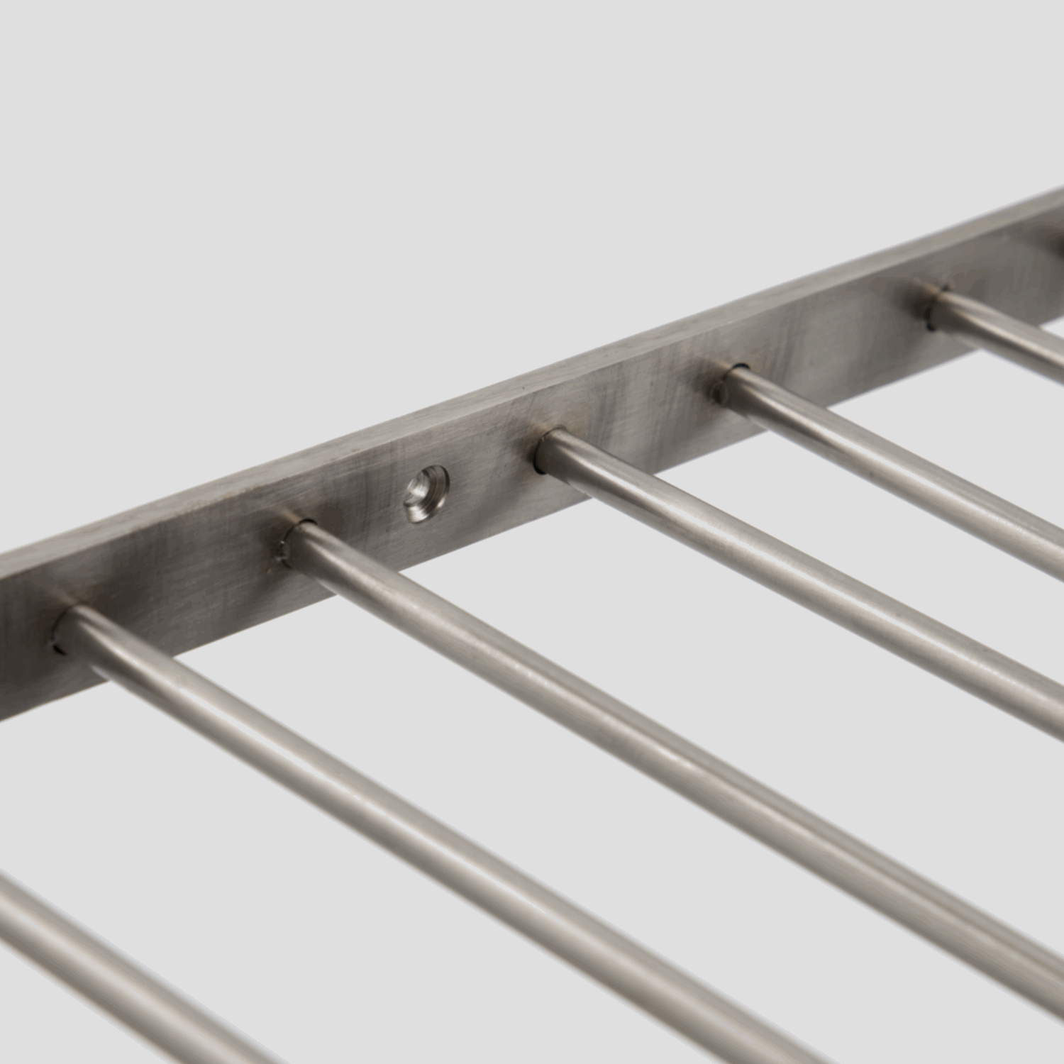 Laget av 100 % rustfritt stål, kombinerer denne hyllen slitestyrke med stilren eleganse. Med sitt minimalistiske uttrykk og klassiske finish er den like praktisk som dekorativ. Hyllen monteres enkelt under skap eller hyller, og gir deg en plassbesparende og dekorativ måte å oppbevare og vise frem dine favorittglass på. Enten du ønsker å løfte hjemmets barområde eller gi kjøkkenet en elegant detalj, er Stilio et ideelt valg.