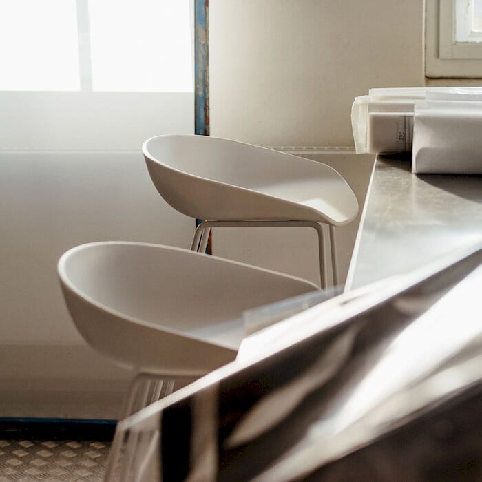 AAS38 HAY sin klassiske barstol "About a stool" har vært en bestselger hos oss i mange år. Barkrakken har lav rygg slik at den enkelt glir helt inn under benkeplaten og gjør det enklere å arbeide på kjøkkenet. En sterk stålramme gir styrke og stivhet til designet, mens setet i polypropylen enkelt vaskes over med en klut. Med et stort utvalg farger vil du garantert finne en variant som passer til ditt kjøkken!