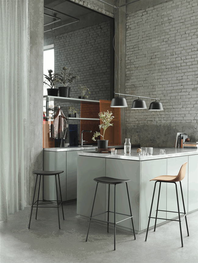 Moderne og uformell barstol fra Muuto. Det nesten flytende setet gir den sittende friheten til å bevege seg rundt på barstolen, mens stolen har et lett utseende som tar liten plass i interiøret.