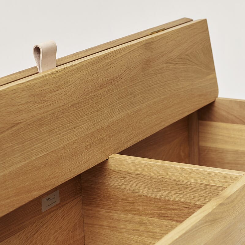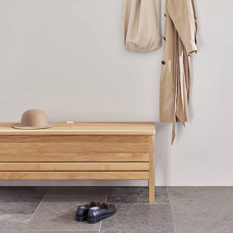 En solid og allsidig benk laget av Herman Studio for Form & Refine. Her møtes funksjonalitet og nordisk minimalisme i et robust og tidløst design. A Line benken har to separerte rom til oppbevaring under setet. Plasser den i gangen, på soverommet eller et annet sted du trenger sitteplasser og oppbevaring. Finnes også i en mindre størrelse.