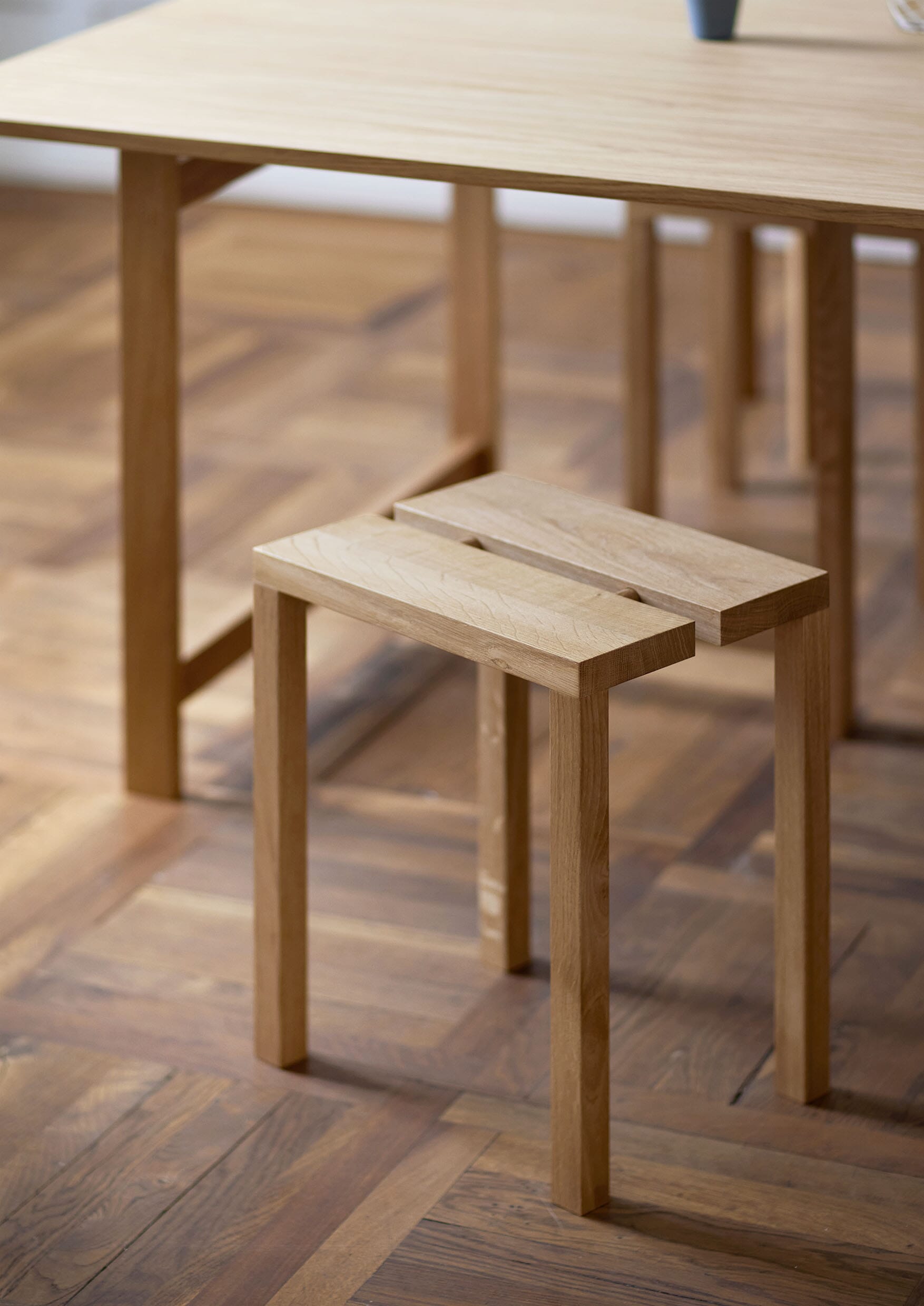 Peg Stool er en lav krakk som fungerer fint som en ekstra stol, et sidebord, eller som et podie til en skulptur eller en vakker vase.