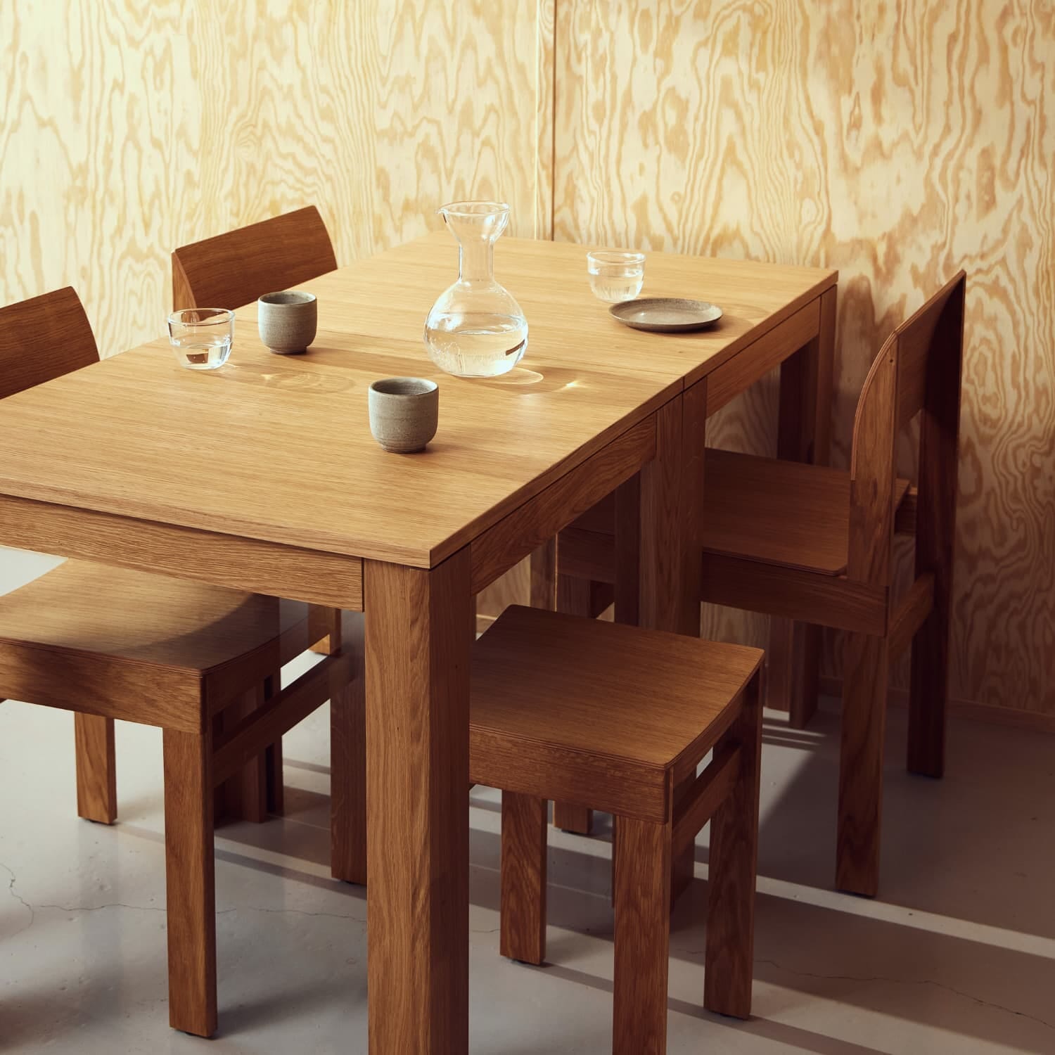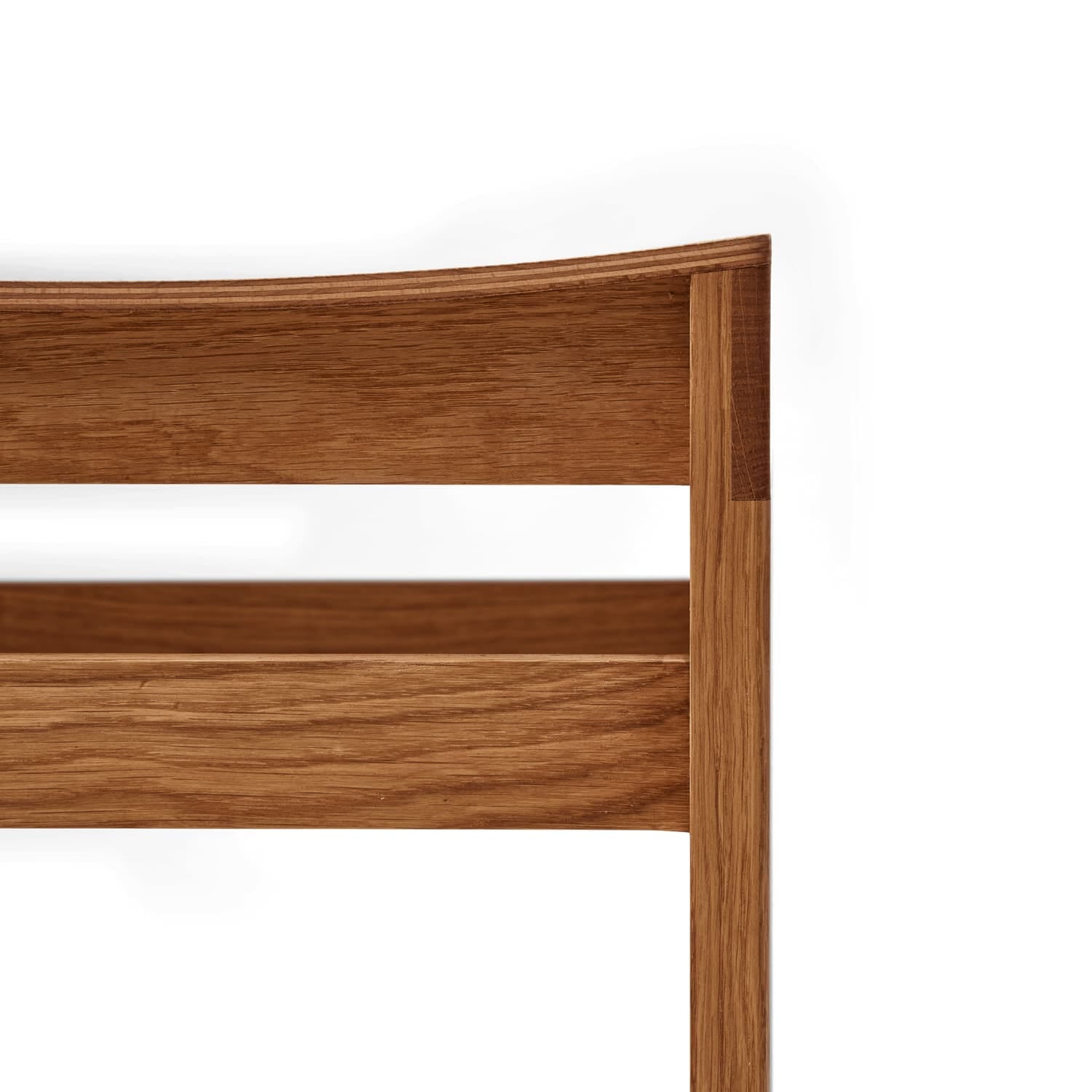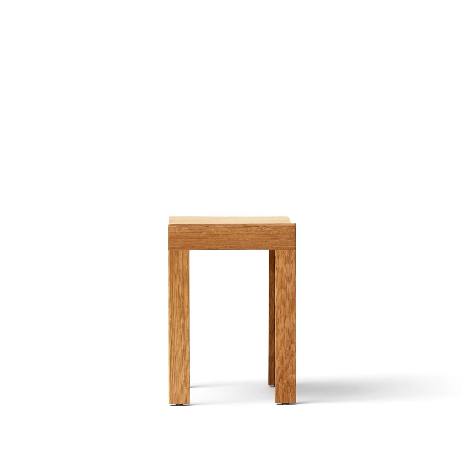 Setet i formpresset finer har en myk, U-formet kurve som gir overraskende god komfort til tross for stolens kompakte størrelse. Rammen er laget av FSC®-sertifisert europeisk eik, behandlet med naturlig olje som fremhever treets struktur og varme. Over tid vil krakken utvikle en vakker patina som gjør den enda mer karakterfull.
