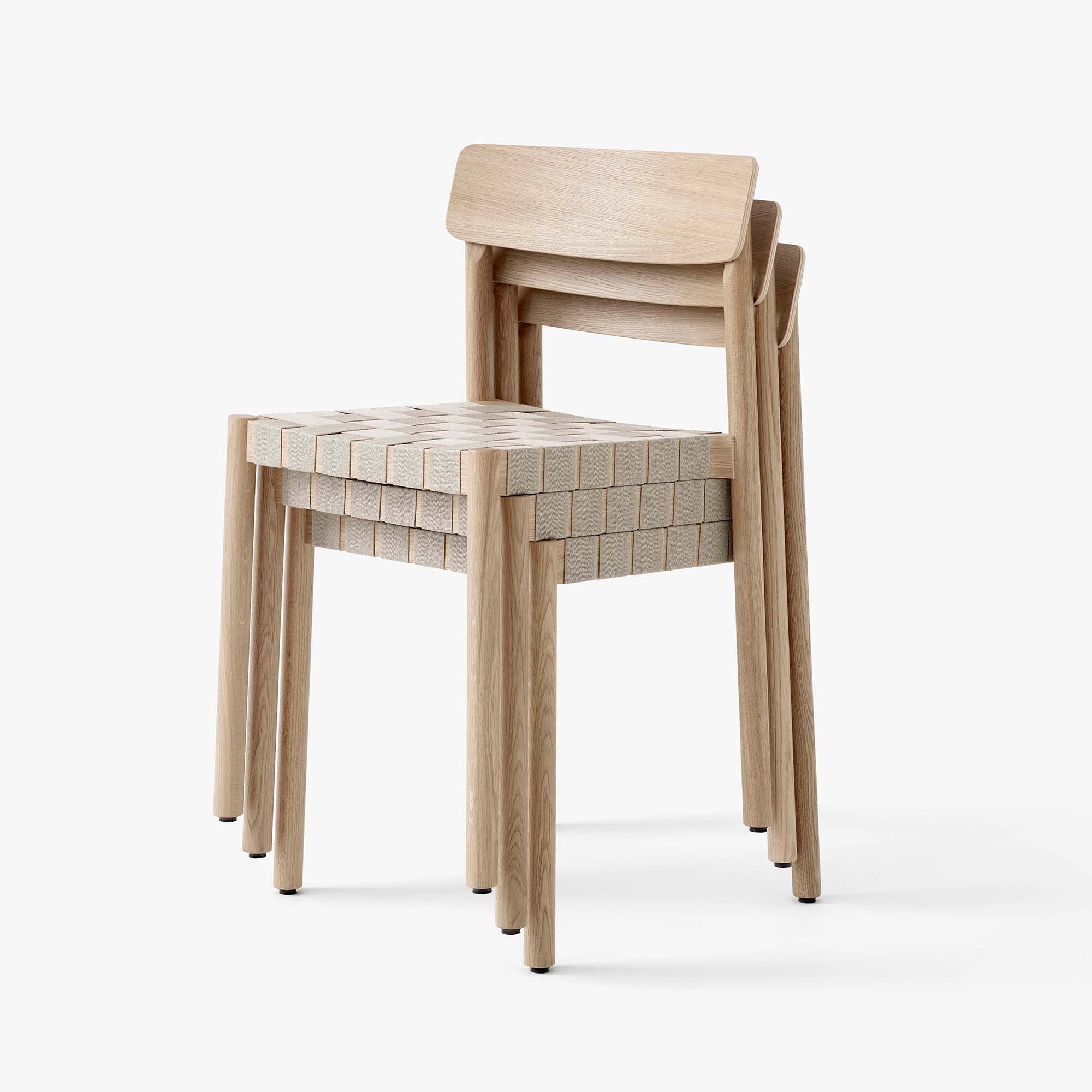 Betty TK1 er en stablebar stol fra &tradition designet av Thau & Kallio. Karakterisert av de unike setebåndene, har stolen en unik estetikk og overraskende god sittekomfort.