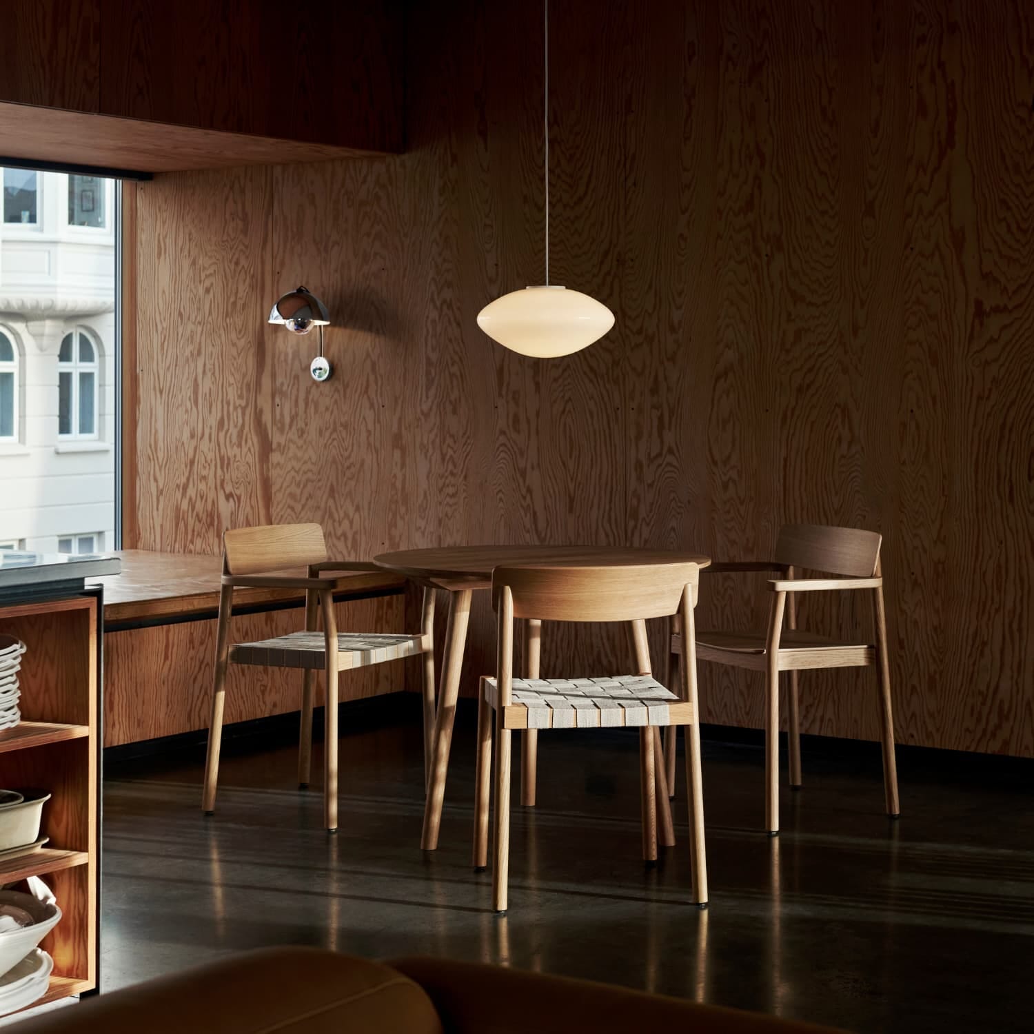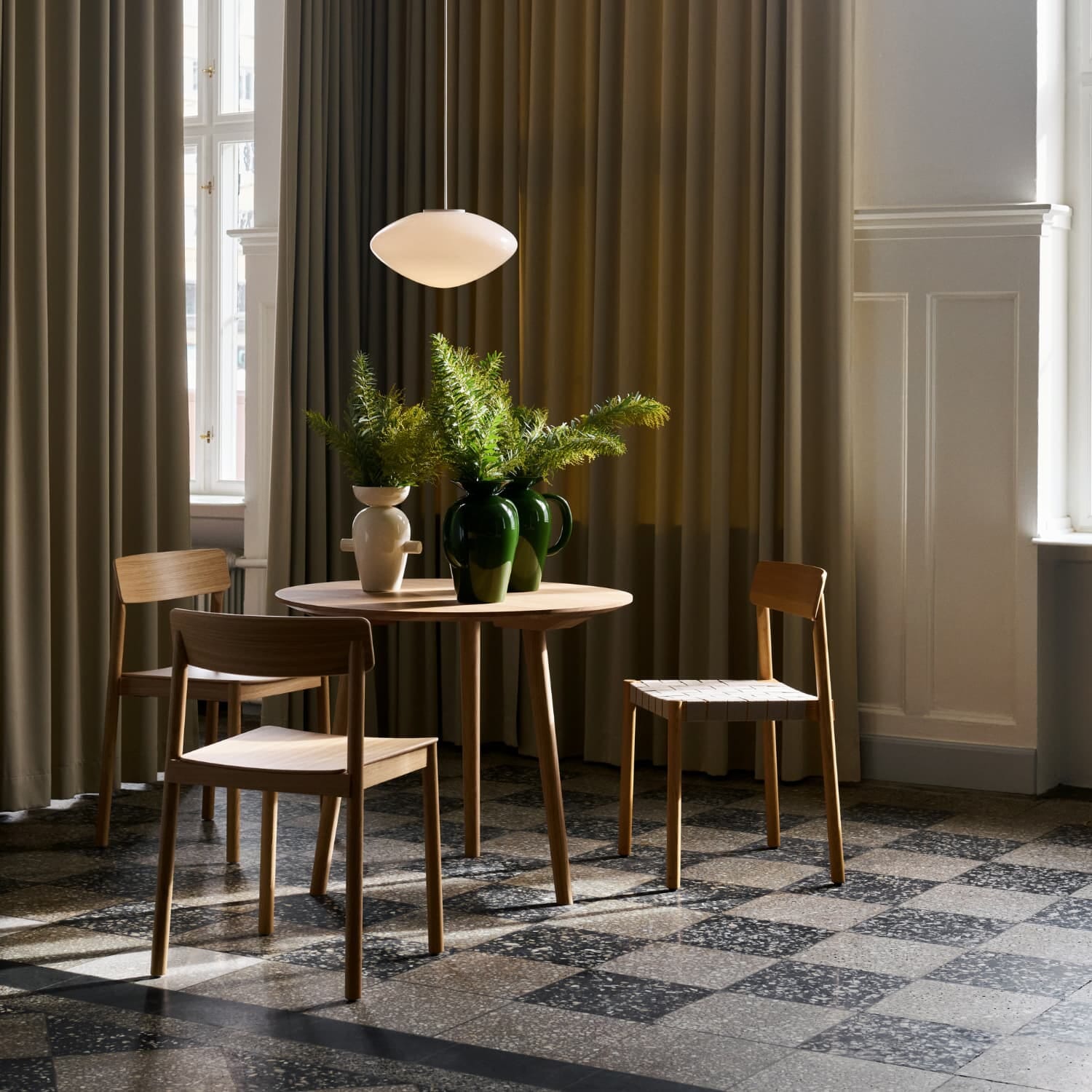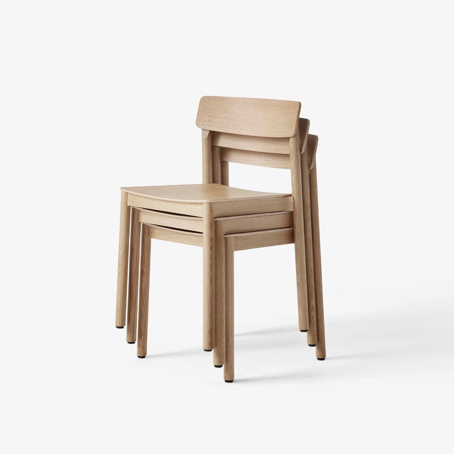 Betty Stol TK2 i lakkert eik er en tidløs stol med et rent og funksjonelt uttrykk som speiler det beste av skandinavisk design.