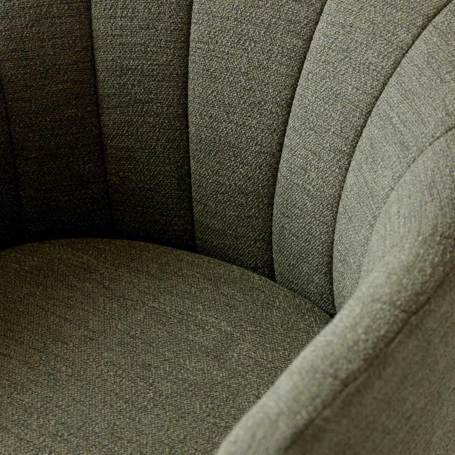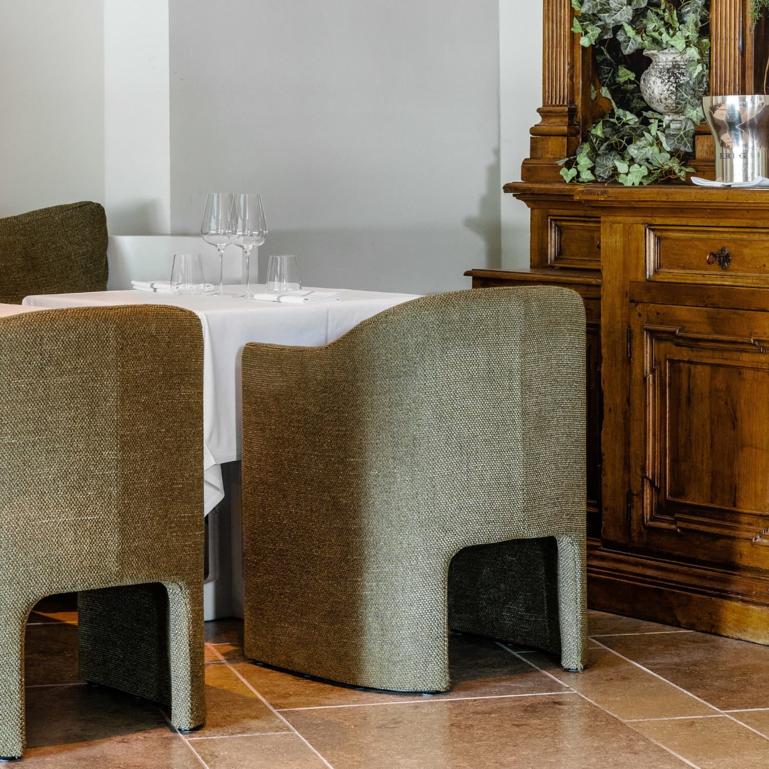 Stolen har en solid ramme i stål og tre, polstret med HR-skum og polyesterfyll for optimal komfort. Den omsluttende ryggen og de avrundede armlenene gir en lun følelse, mens trekket i Ecriture tilfører en eksklusiv tekstur og et moderne preg. Resultatet er en stol som inviterer til å sette seg ned – enten for en kopp kaffe, en samtale eller et øyeblikks stillhet.