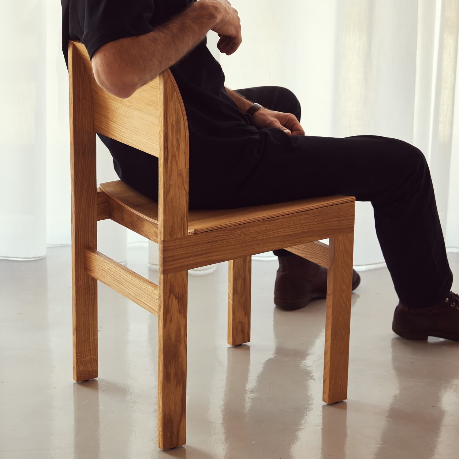 Spisestol Sonder i eik kombinerer skulpturell klarhet med høy komfort og tidløs funksjonalitet.