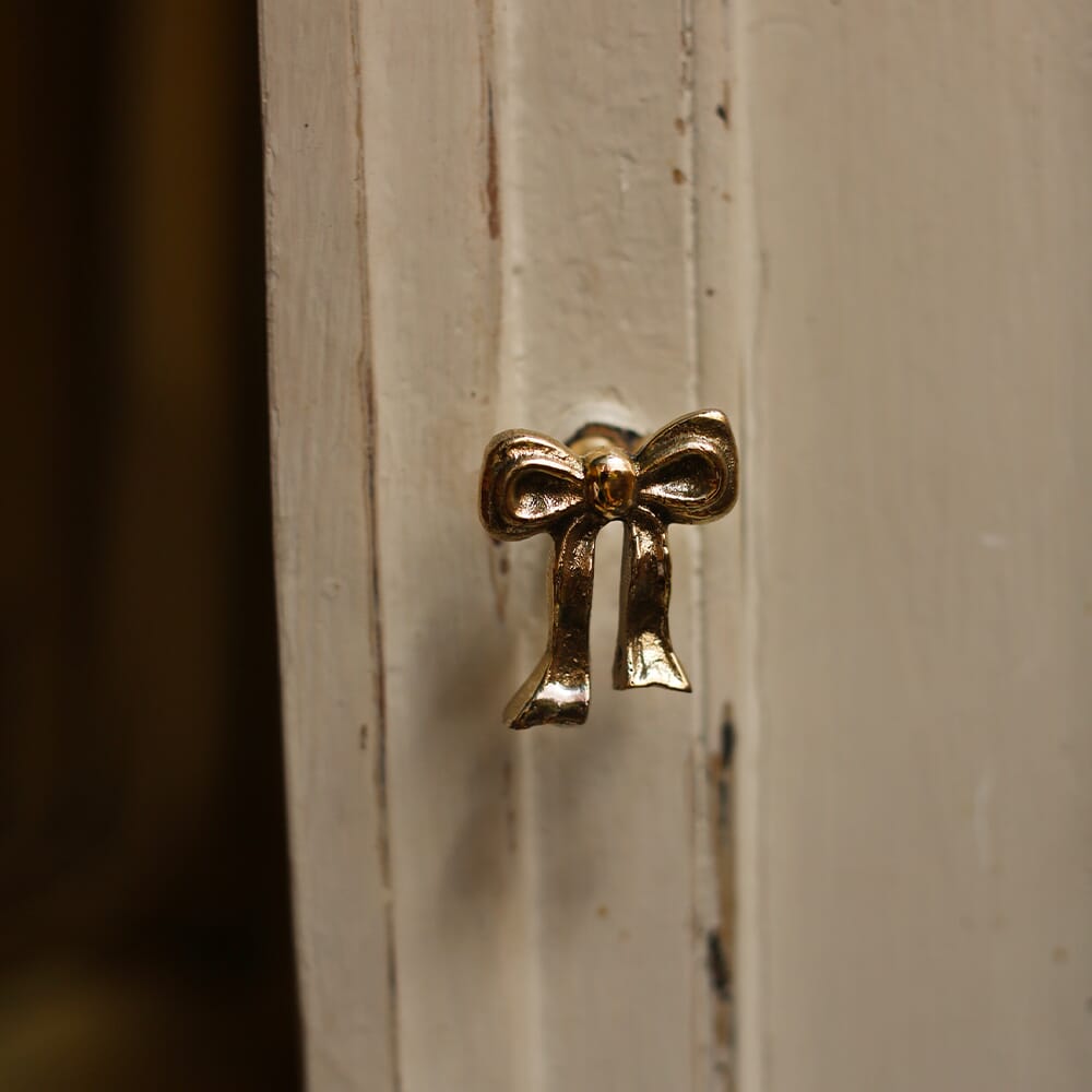 Oppdag Bowie Bow Knott – den perfekte løsningen for å gi skap, skuffer og dører en rask og stilfull oppgradering. Håndlaget av resirkulert messing av våre dyktige håndverkere i India, kommer denne unike knotten med en skinnende gullfinish som kombinerer funksjonalitet med moderne design.