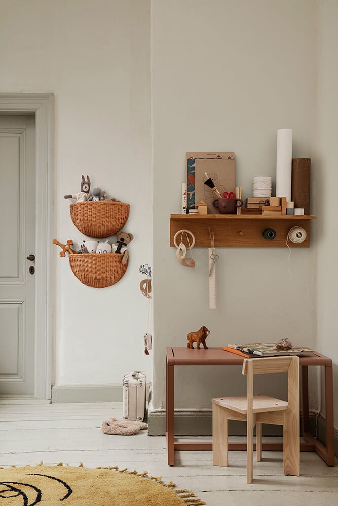 Praktisk hylle/knaggrekke fra Ferm Living som er enkel å montere. Heng den opp på kjøkkenet og bruk den til kjøkkenhåndklær og servise, eller bruk den som hattehylle i gangen.