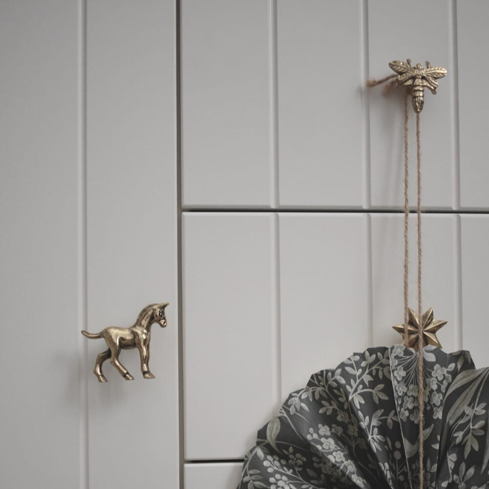 Queen Bee er en dekorativ knott som vil innføre et lekent preg på din kommode eller skap. Kan også brukes på vegger og fungere som en smykkeopphenger. Lag hullet først og stram til forsiktig.